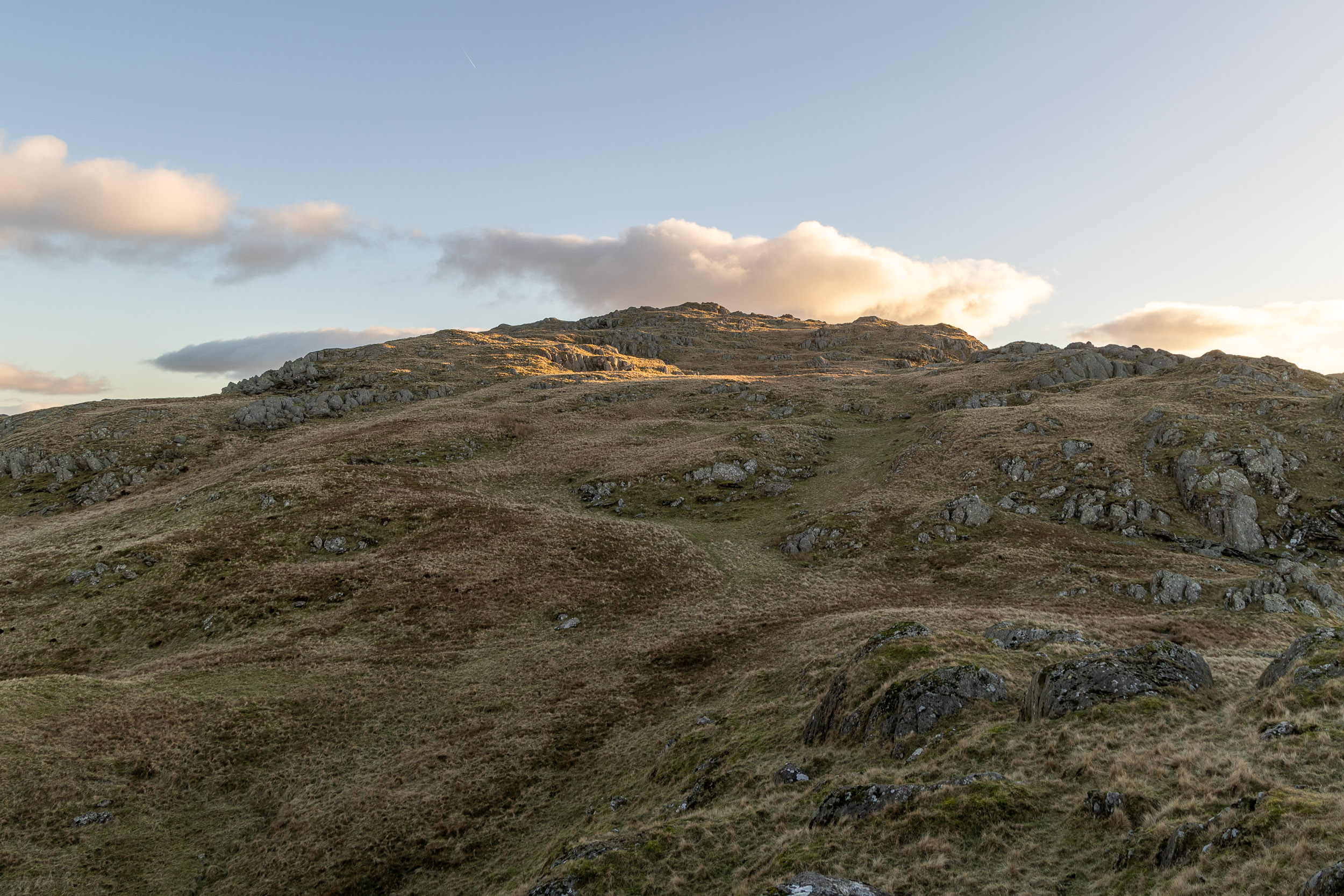 On leaving Pikes there is a bit of a disheartening dip before a seemingly long and steep climb to the summit of Caw. I wasn’t sure whether I would make it before the sun dipped behind Black Combe which is probably 10-15 minutes before actual sunset. As it turned out the climb wasn’t too bad after all!
