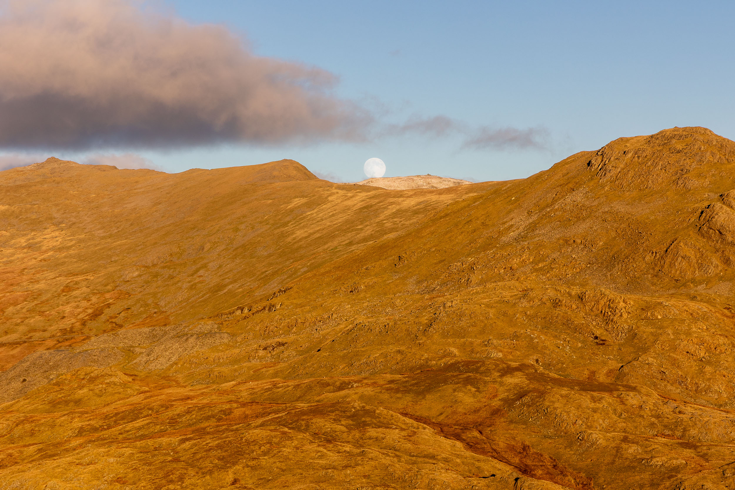 The moon rising over the Coniston fells, taken from Pikes.