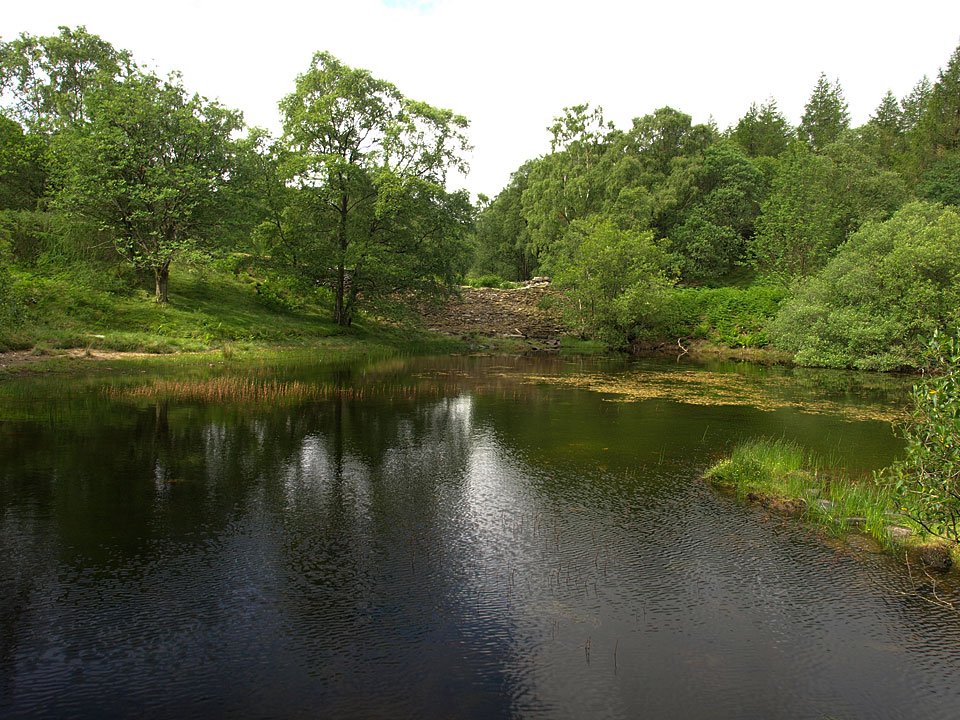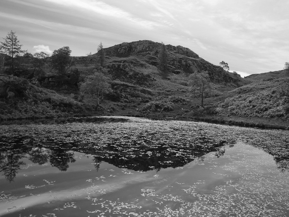 Looking across the larger reservoir, Ivy Crag to the left and Holme Fell summit ridge to the right. I had a near miss here - as I pulled my gloves from my pocket, my phone came with it and bounced 3 times on the (thankfully) soft grass before neatly plopping in the reservoir. I fished it out straight away and checked to see it was working - phew, I didn't know they were that water resistant!