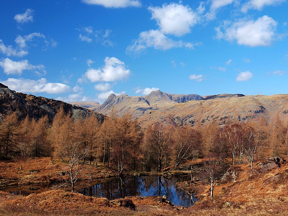 A fleeting glimpse of Wetherlam. As I reached the summit the cloud cover closed in with only occasional breaks in it.