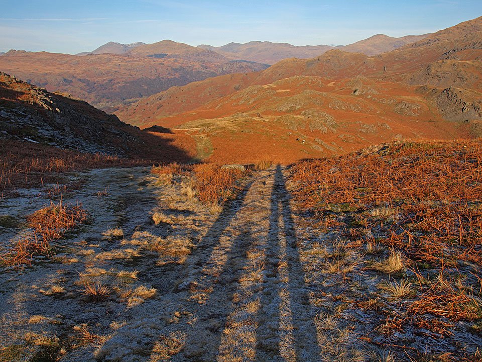 If anything there is even more cloud now climbing to Stickle Pike. I bumped into one of Connie's old teachers here, the only person I met all day so we stopped and chewed the fat about the good old days (when we used to work for a living!). The path to Stickle Pike is a great groove up the fellside but in my memory it was always a thing path in the grass.
