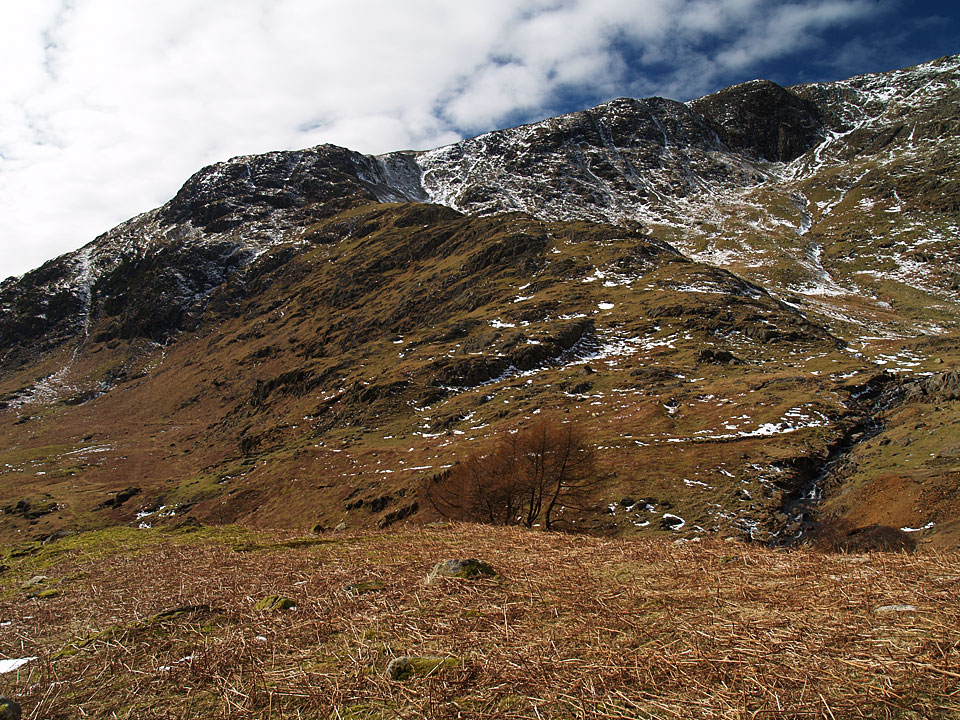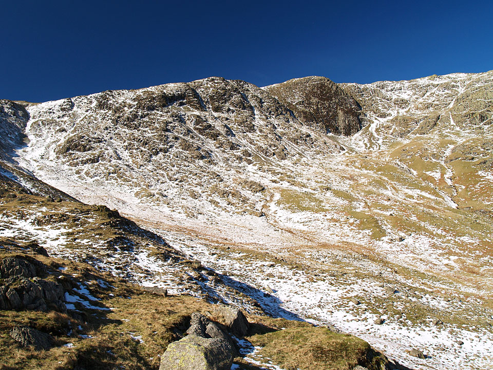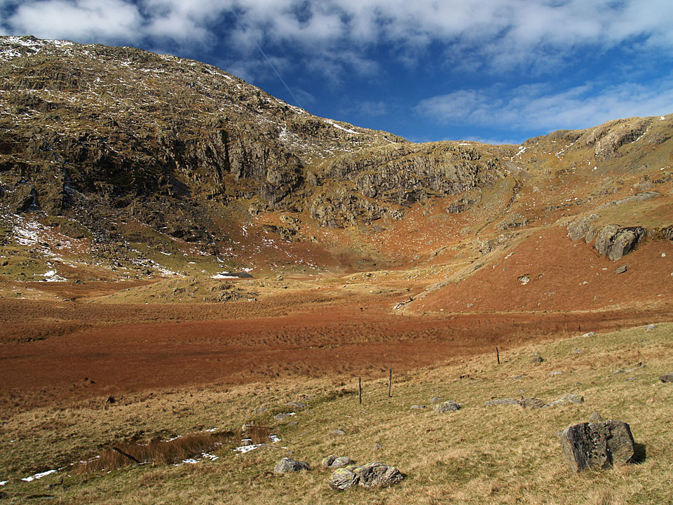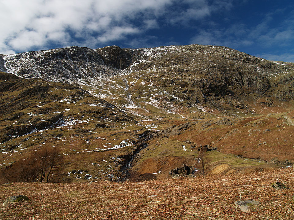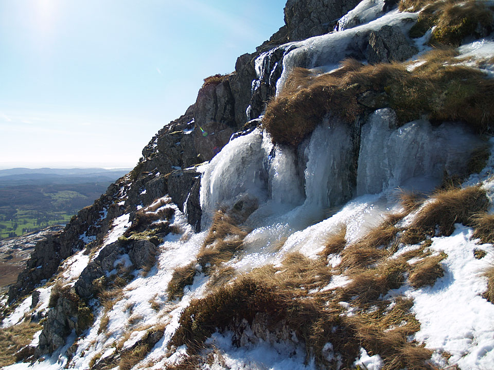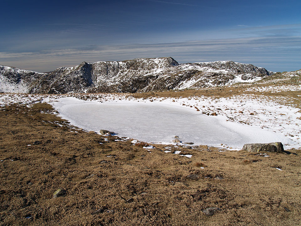 The weather today was fantastic with clear views for miles and cold, frozen ground making almost perfect walking conditions. This is a favourite shorter walk of mine, the walks along Steel Edge and Wetherlam Edge being the best way to climb this fell. Wetherlam Edge was treacherous in places with sheet ice which could catch out the unwary.