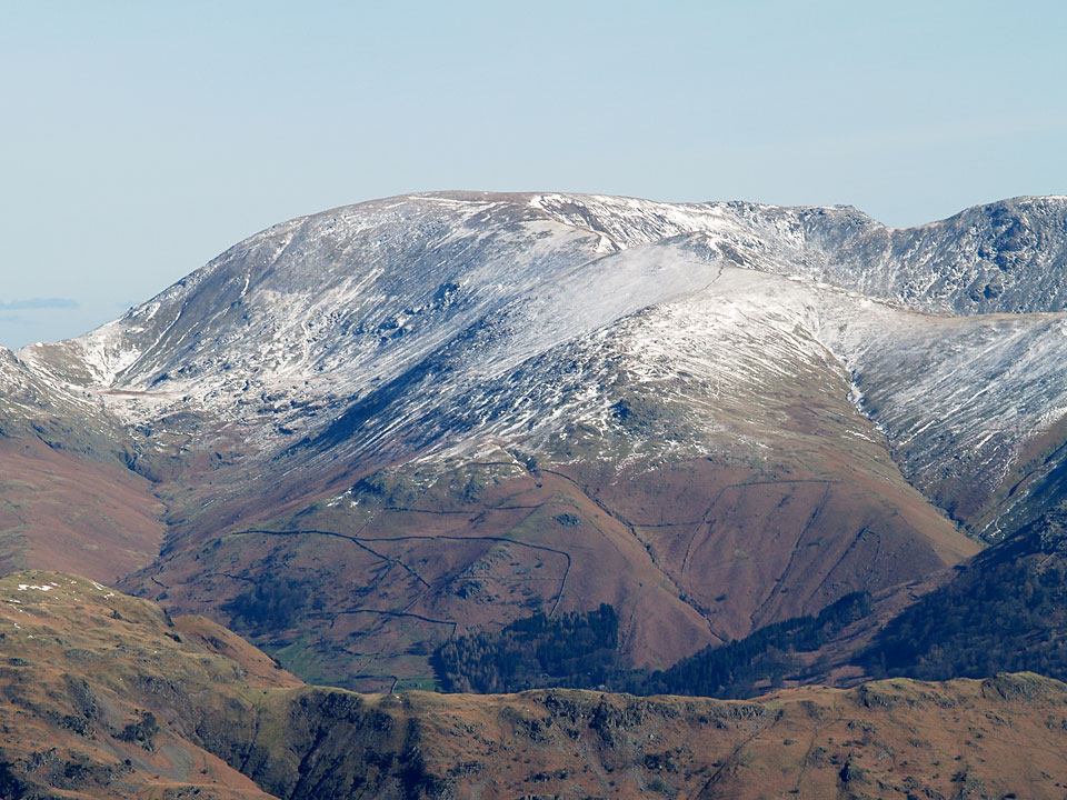 Swirl How and Great Carrs from the summit of Wetherlam.