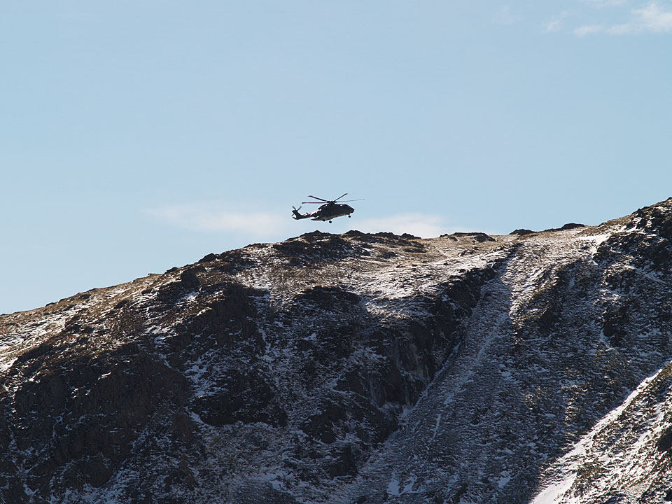 As I descended Wetherlam Edge, a military helicopter was buzzing round. It landed on the summit, took off again and then landed here at the top of Steel Edge. Looks like an easier way to get to the top!