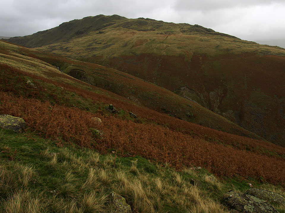 Today I had a short walk up to Buckbarrow from Greendale. It was quite warm and there was the occasional but brief sunny spell. The wind was really strong on the top and I could hardly hold the camera steady at times. Before the walk I got talking to Jos Naylor, the fell running legend (the ‘King of the Fells’) who lives in these parts. He has a working dog that is part Beardie, showing the widespread use of the breed in the Lake District as sheepdogs. It was fantastic to meet the great man so it was only fitting that I should visit his cairn today too. I think old Jos had his eye on Casper to use as a working dog on the fells…