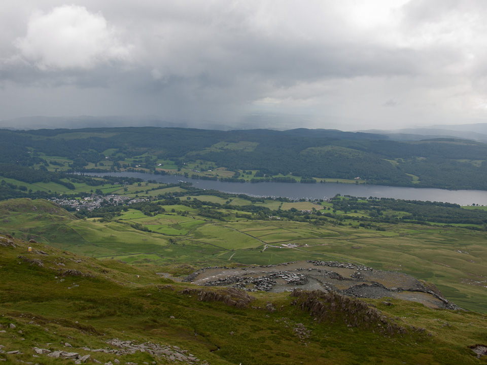 Out of the clouds looking across Coniston on the descent.