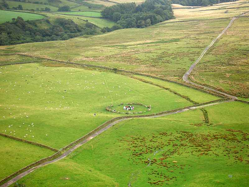 A panoramic view from Raven Crag - Swinside Farm below with Swinside Stone Circle, centre, and Knott Hill.