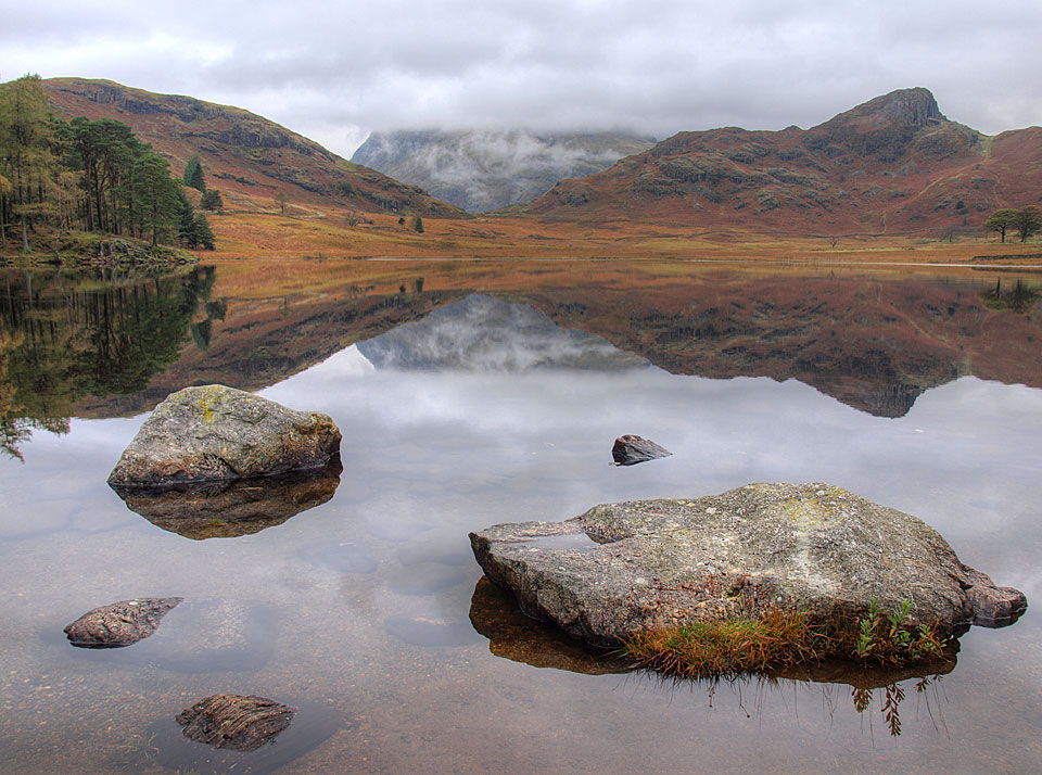 Once again it was overcast this morning but with a high pressure hanging over the Lake District, it ensured the lakes and tarns remained calm and made for some excellent reflections as I was passing. Once up on the summit of Lingmoor Fell, the clouds eventually caught up with us and the higher fells all seemed to have their head in the clouds today.