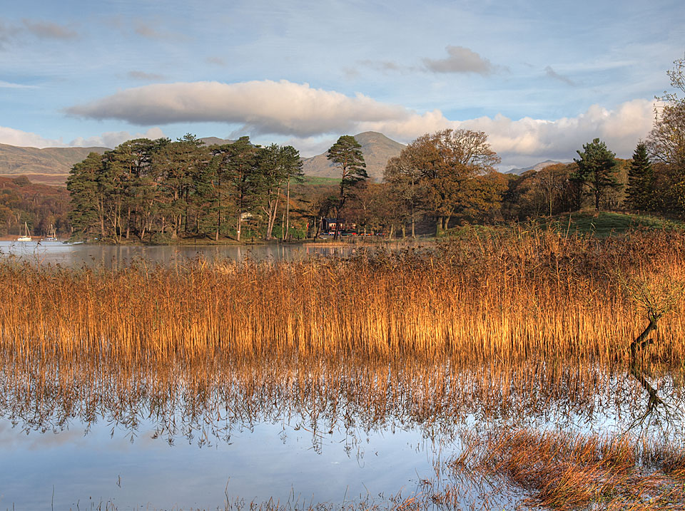 There is a mirror finish on Coniston Water below, Lake Bank Jetty to the left.