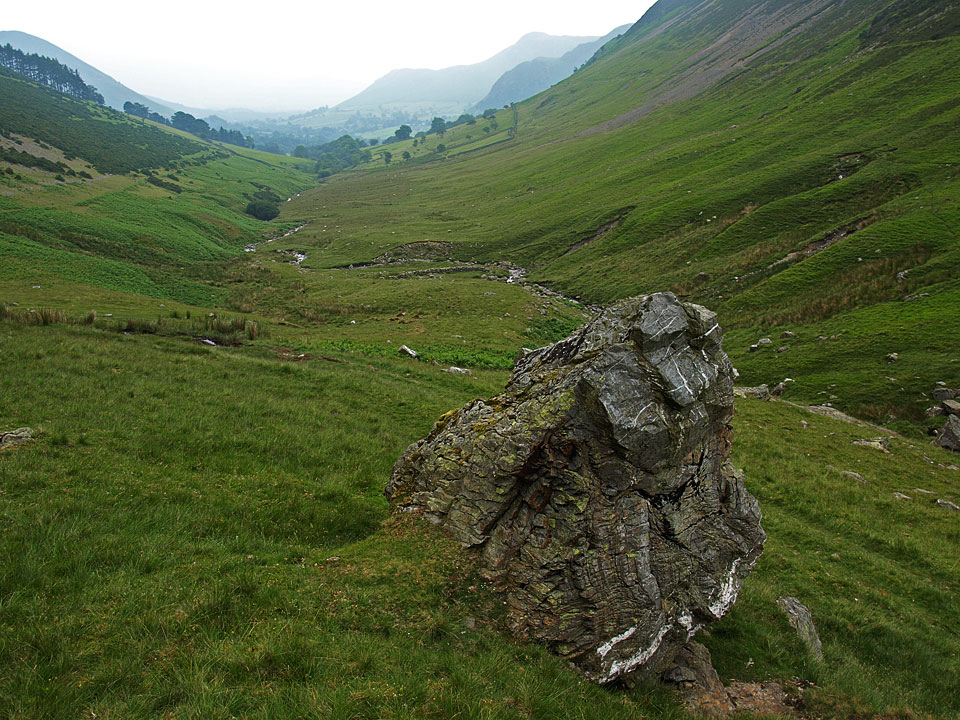 Hazy Robinson and High Snab Bank from Birkrigg. All today's early views were very hazy until the sun managed to burn through. It was, though, very muggy and close and it made the climb to Robinson hard going.