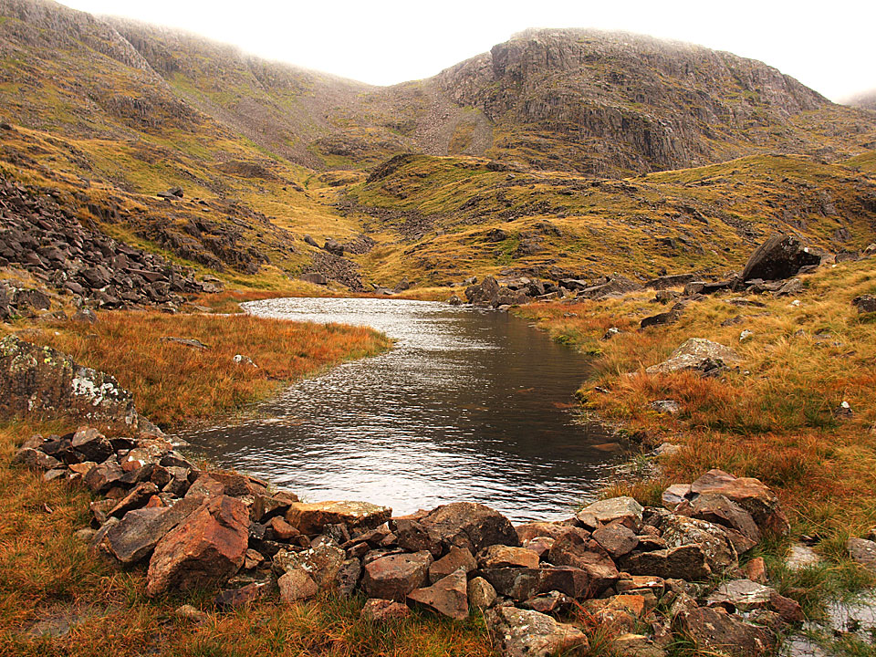 Lambfoot Dub and Broad Crag. I went 'off piste' to find this tarn and now have it earmarked as a place to bathe next summer!