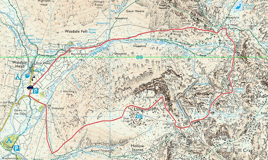 Wasdale Head – Moses Trod – Corridor Route – Lambfoot Dub – Lingmell Col – Lingmell – Wasdale Head