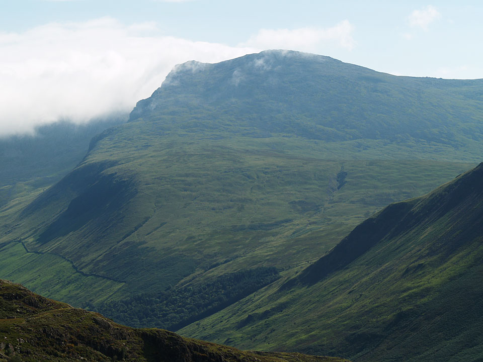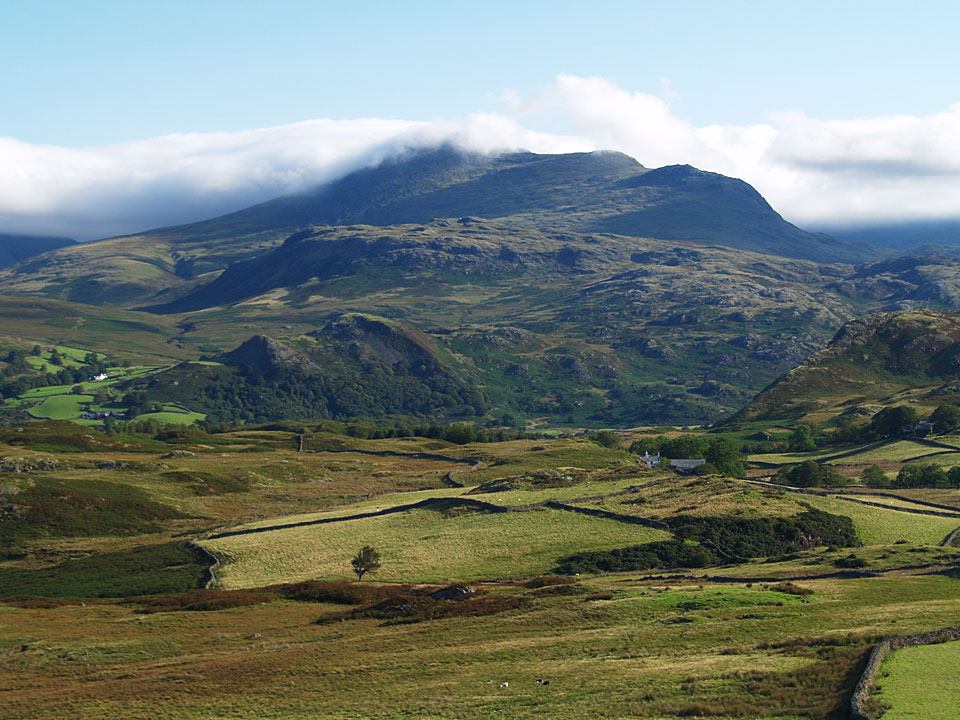 A cloud covered Scafell and Slight Side from the Birker Fell road, one of the best road views in the Lakes.