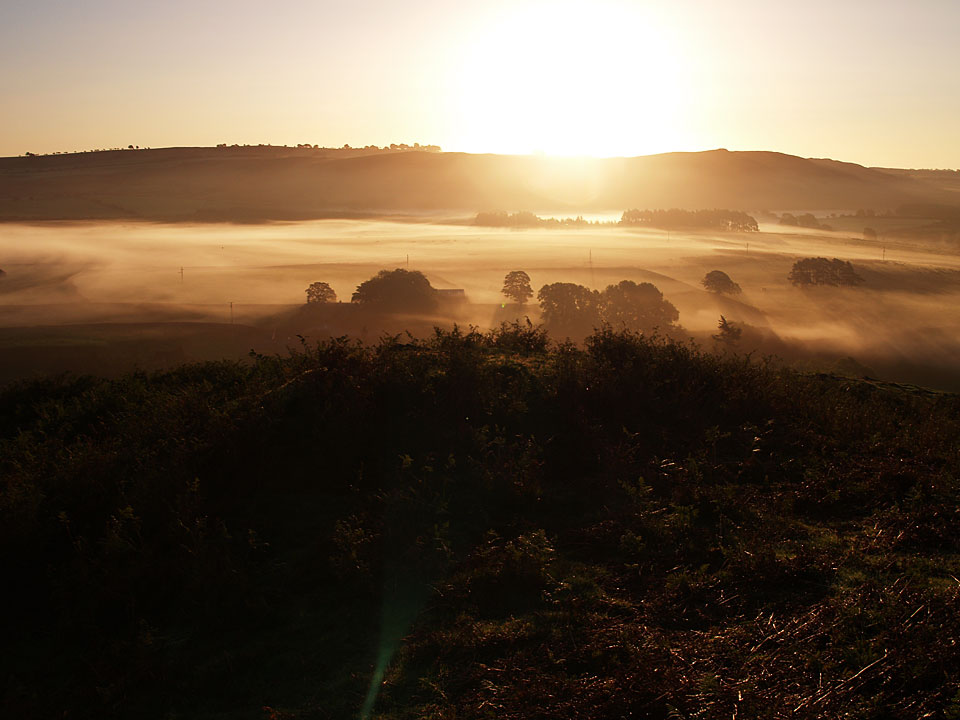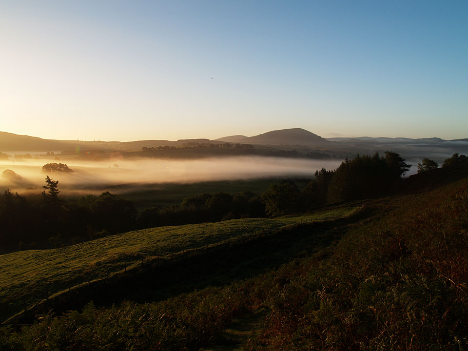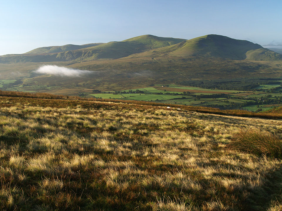Sunrise in Mungrisdale at the start of the climb to Souther Fell, Little Mell Fell and Great Mell Fell in view.