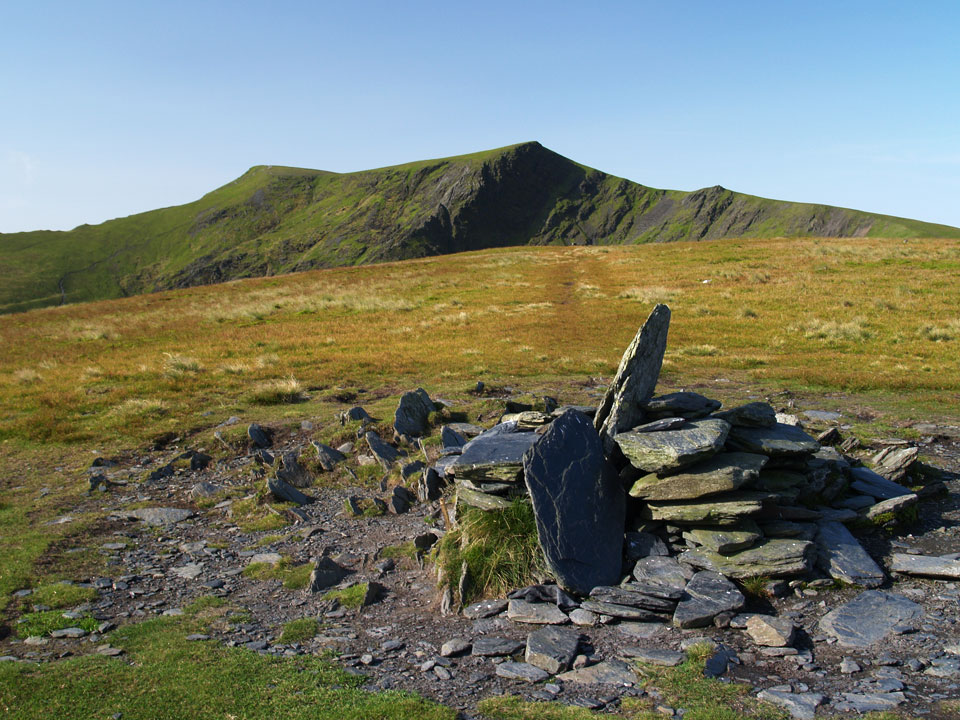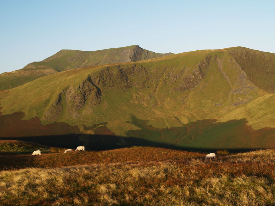 Blencathra clearly showing where the alternative name of Saddleback comes from with Bannerdale Crags in the foreground.
