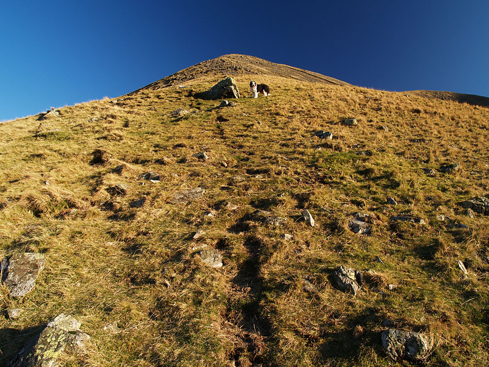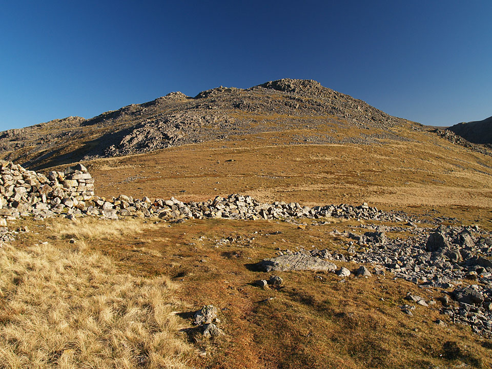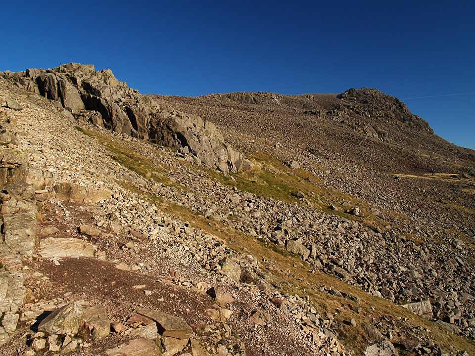 Near the summit of Lingmell now at Goat Crags. We crossed the wall and headed left for the column overlooking Wasdale on the northern edge of Lingmell.