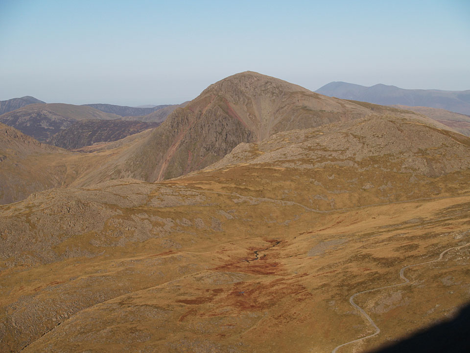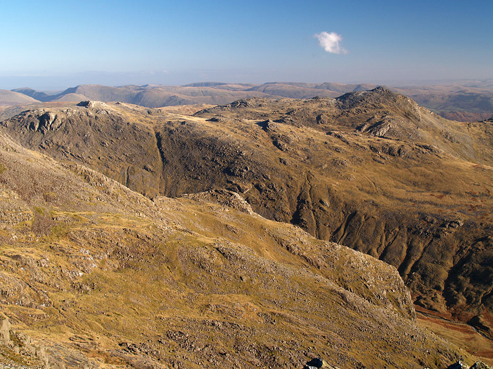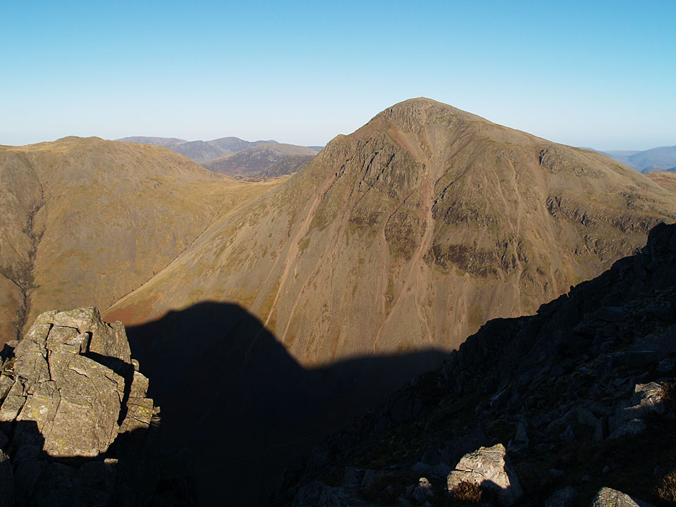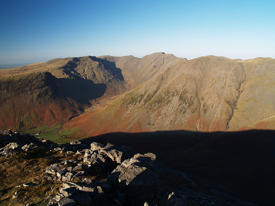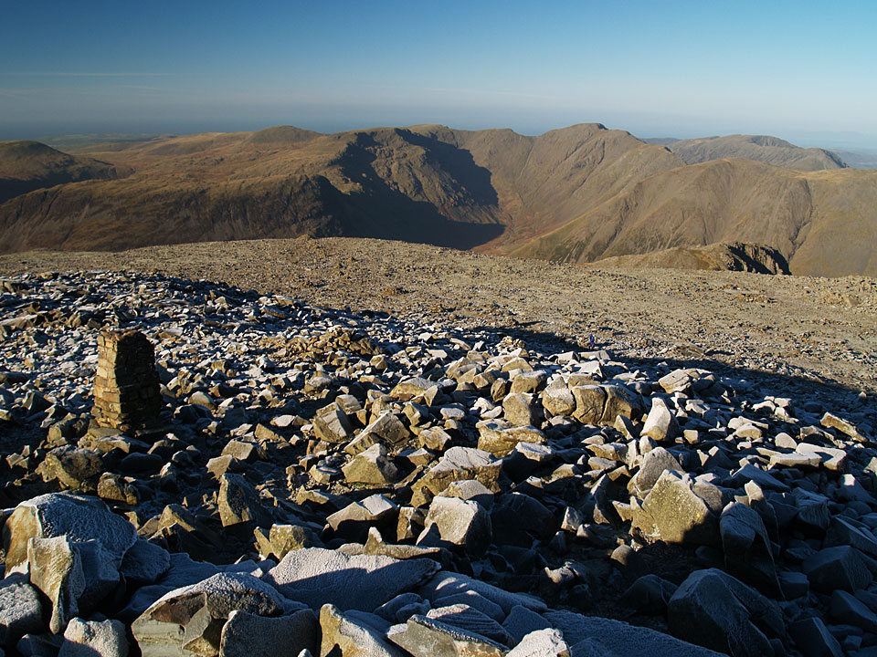 The north-western fells from Scafell Pike. All was clear to Grasmoor and Skiddaw with Derwent Water and Styhead Tarn in view. That looks like a shadow of me on top of Scafell Pike too.