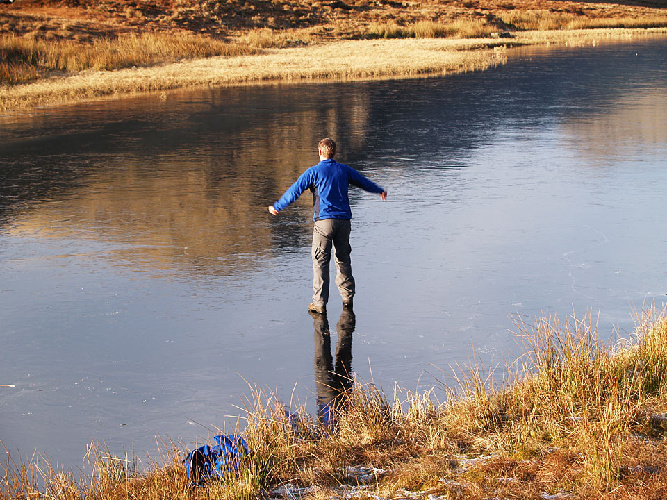 Casper and Louise watch, wondering whether the ice will hold me or will I fall through?