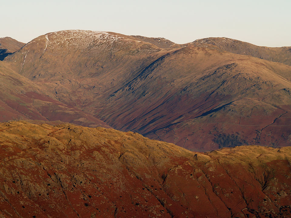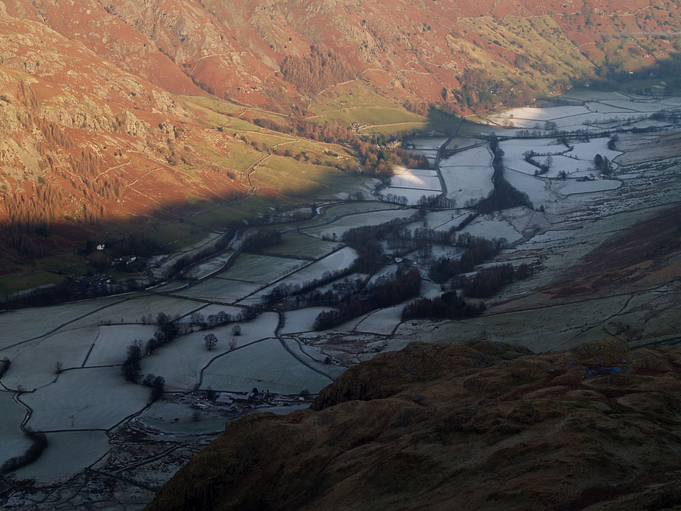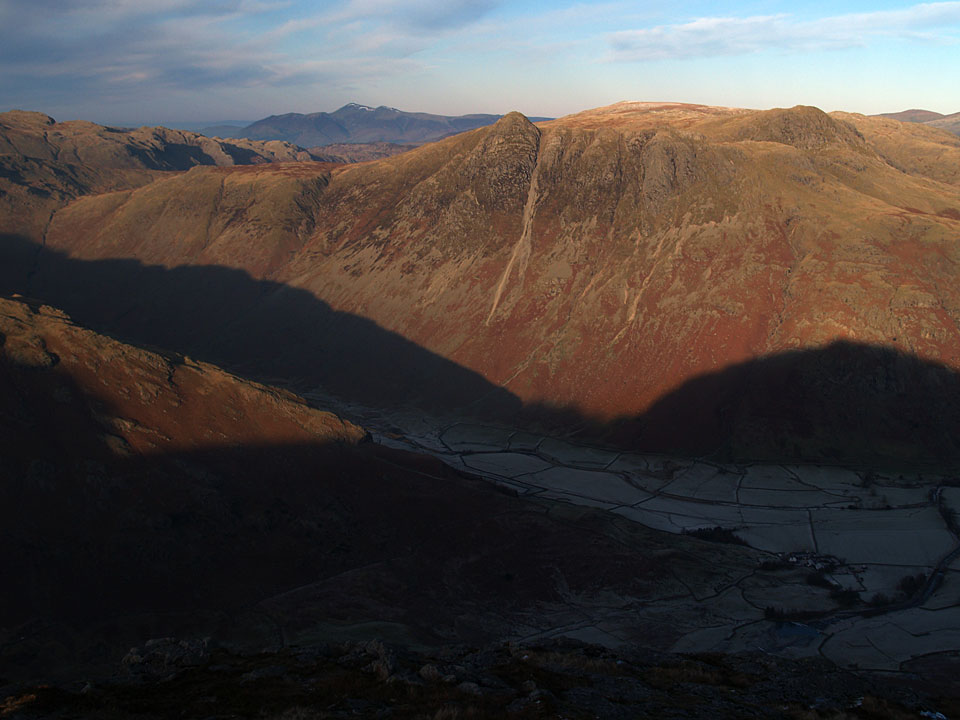 The Helvellyn ridge still has some snow on the top whilst Great Langdale has had no sun today and looks chilly.