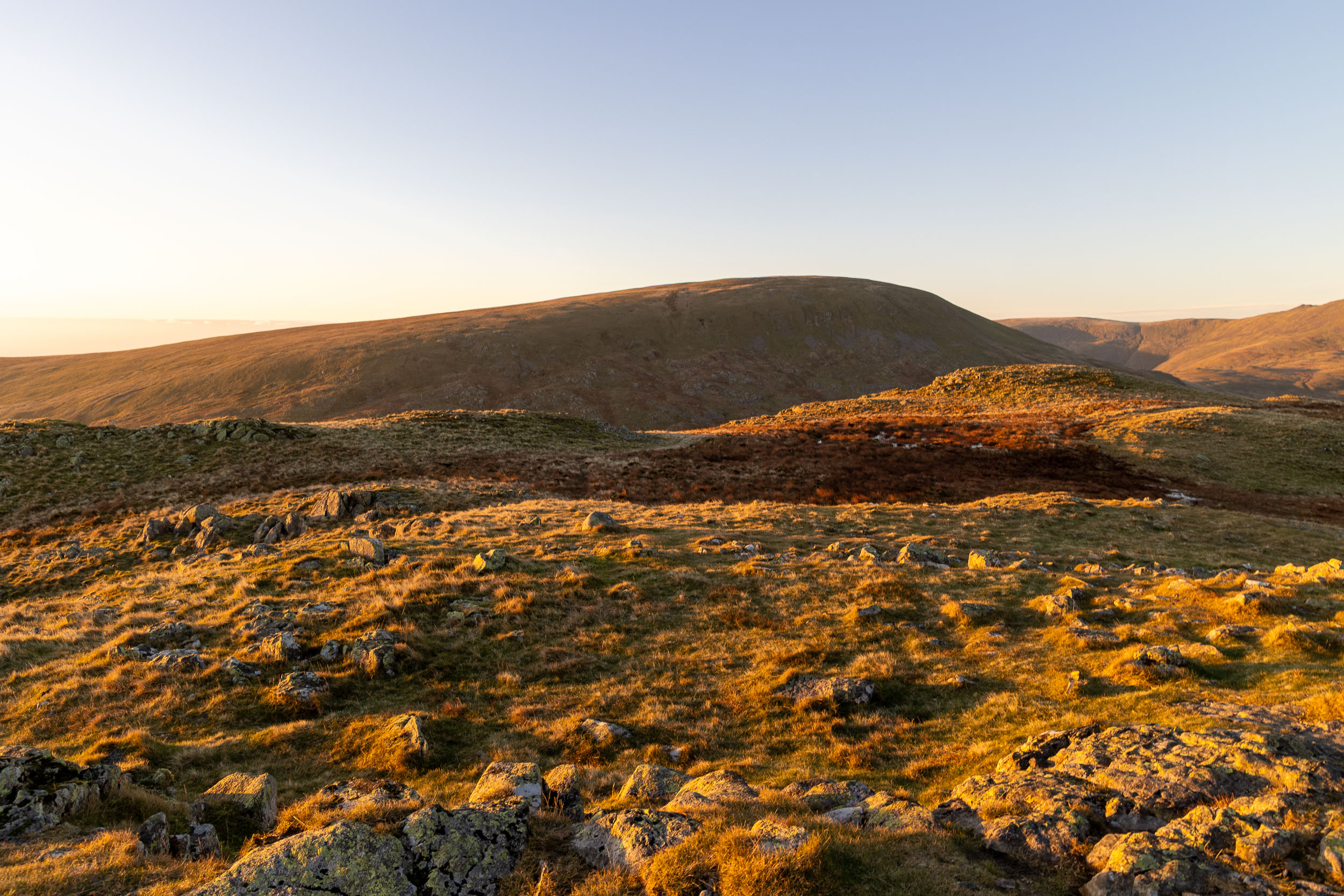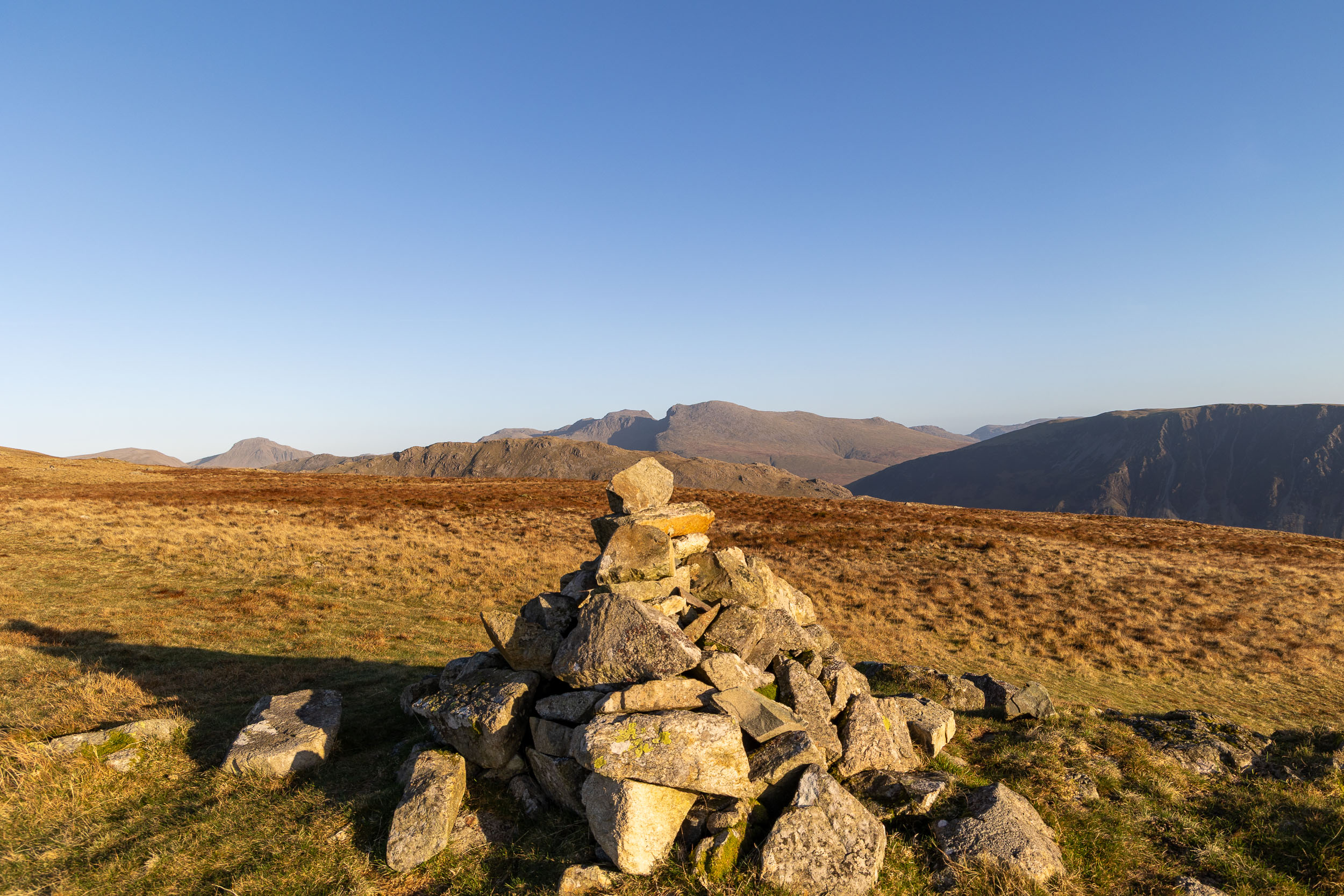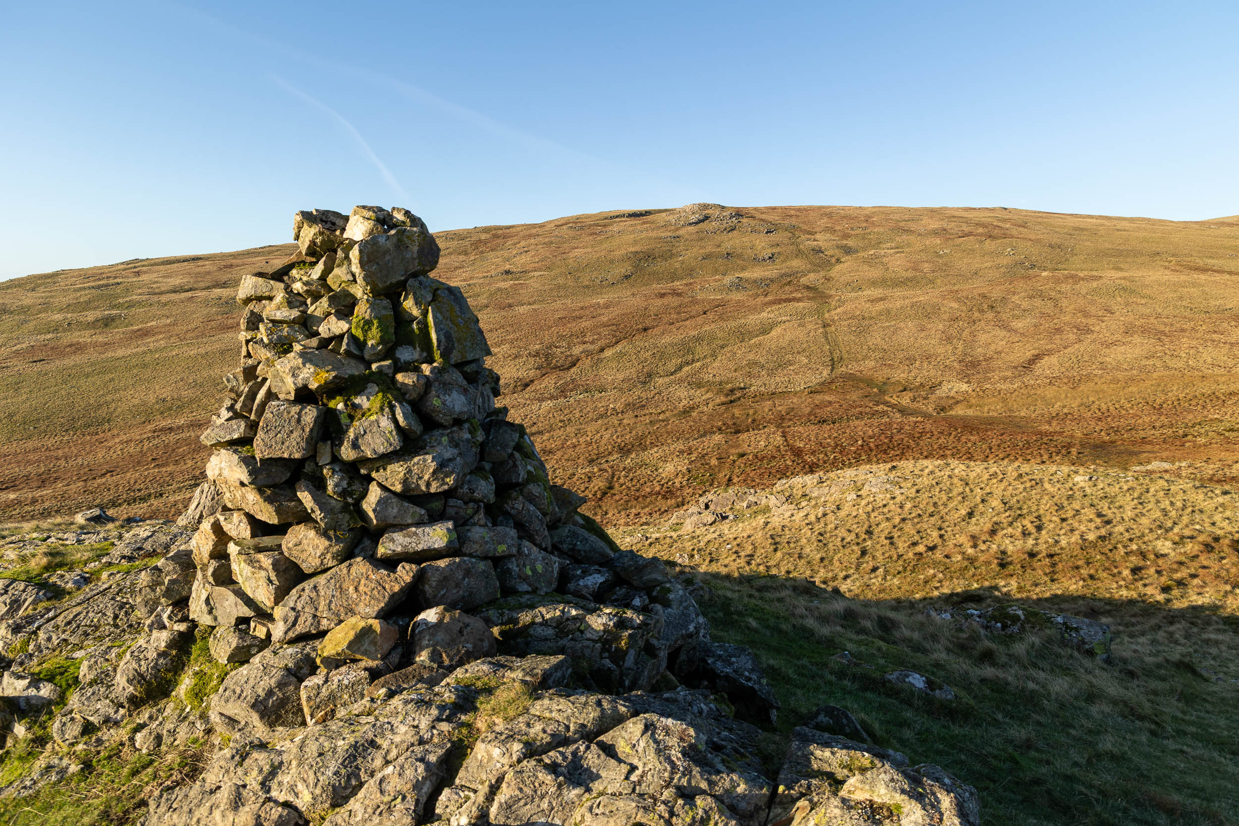 Buckbarriow summit. It was a real boggy trudge getting from Joss's cairn to Buckbarrow and I was conscious of the time it was taking. I wanted to see the sunset from up on high aiming to get to Middle Fell for around 15.45 (sunset 16.10) with a bit of breathing room to get down before it was dark.