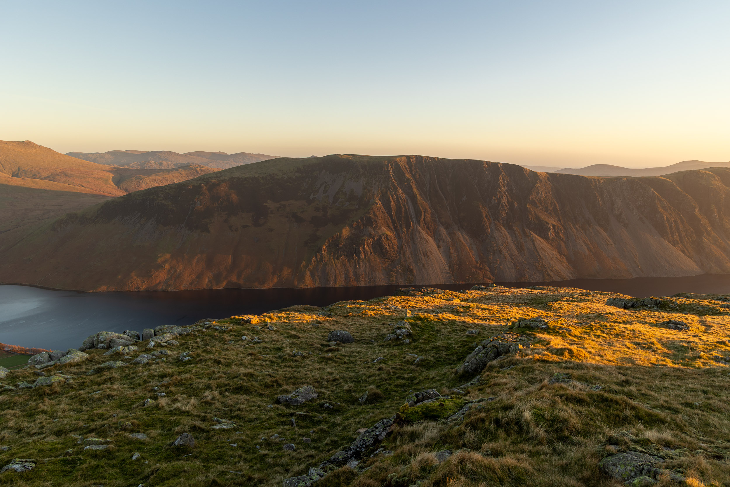 What a fabulous sunset over the Scafells. We sat there for a few minutes, a oatie bar for me and a Bonio for Finlay. What a life Finlay, how blessed we are to witness scenes such as this. It was so peaceful today, not a breath of wind, the ever lowering sun and not a single person seen all afternoon...perfect.