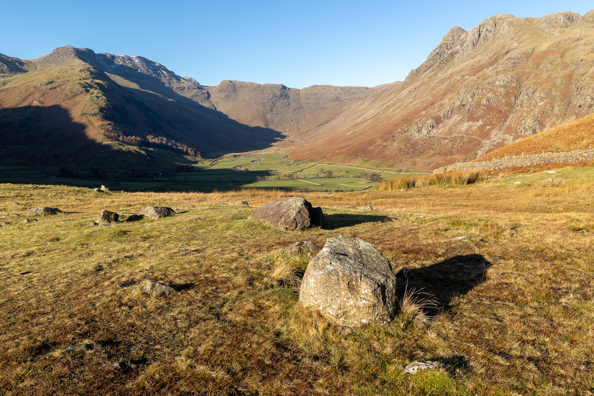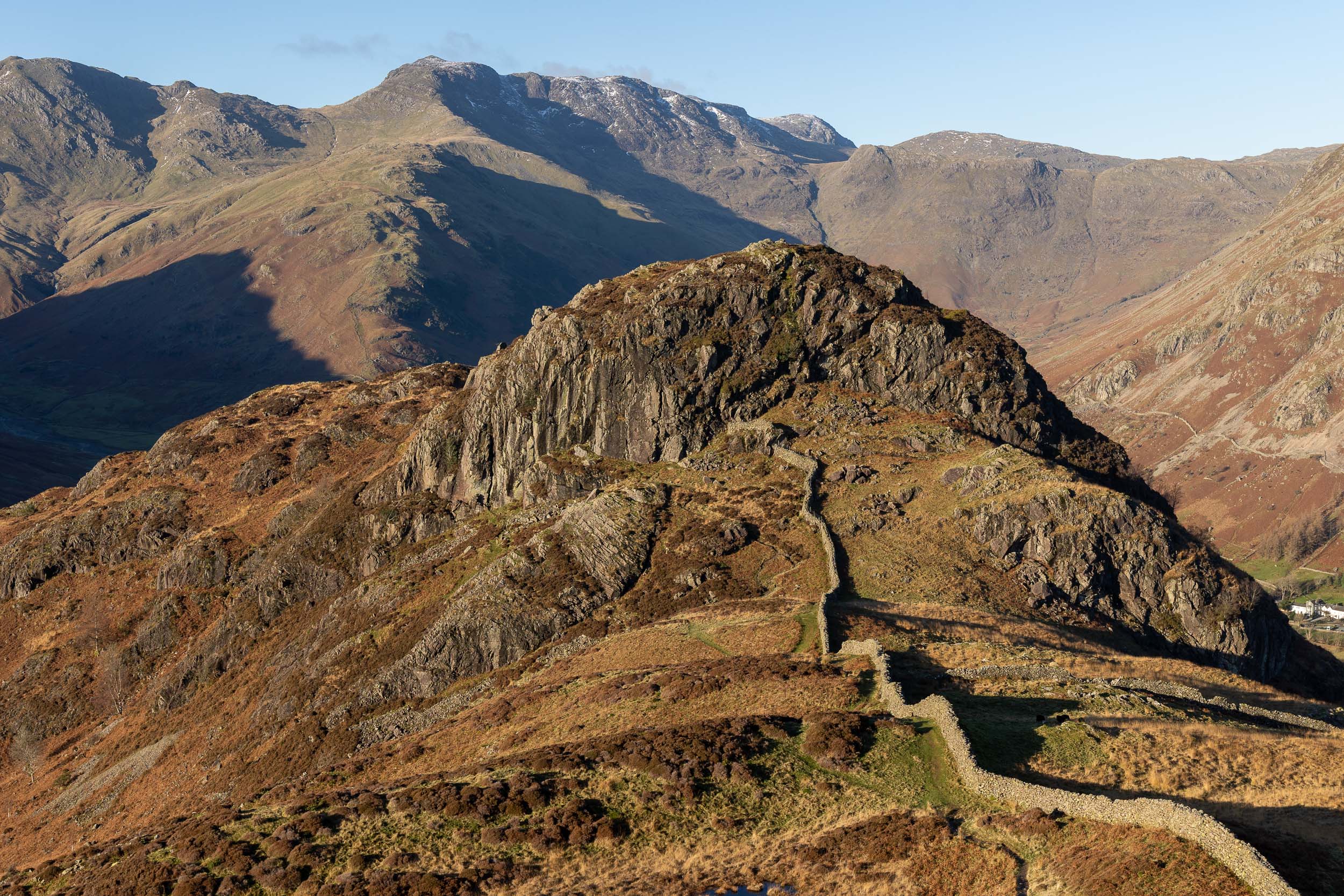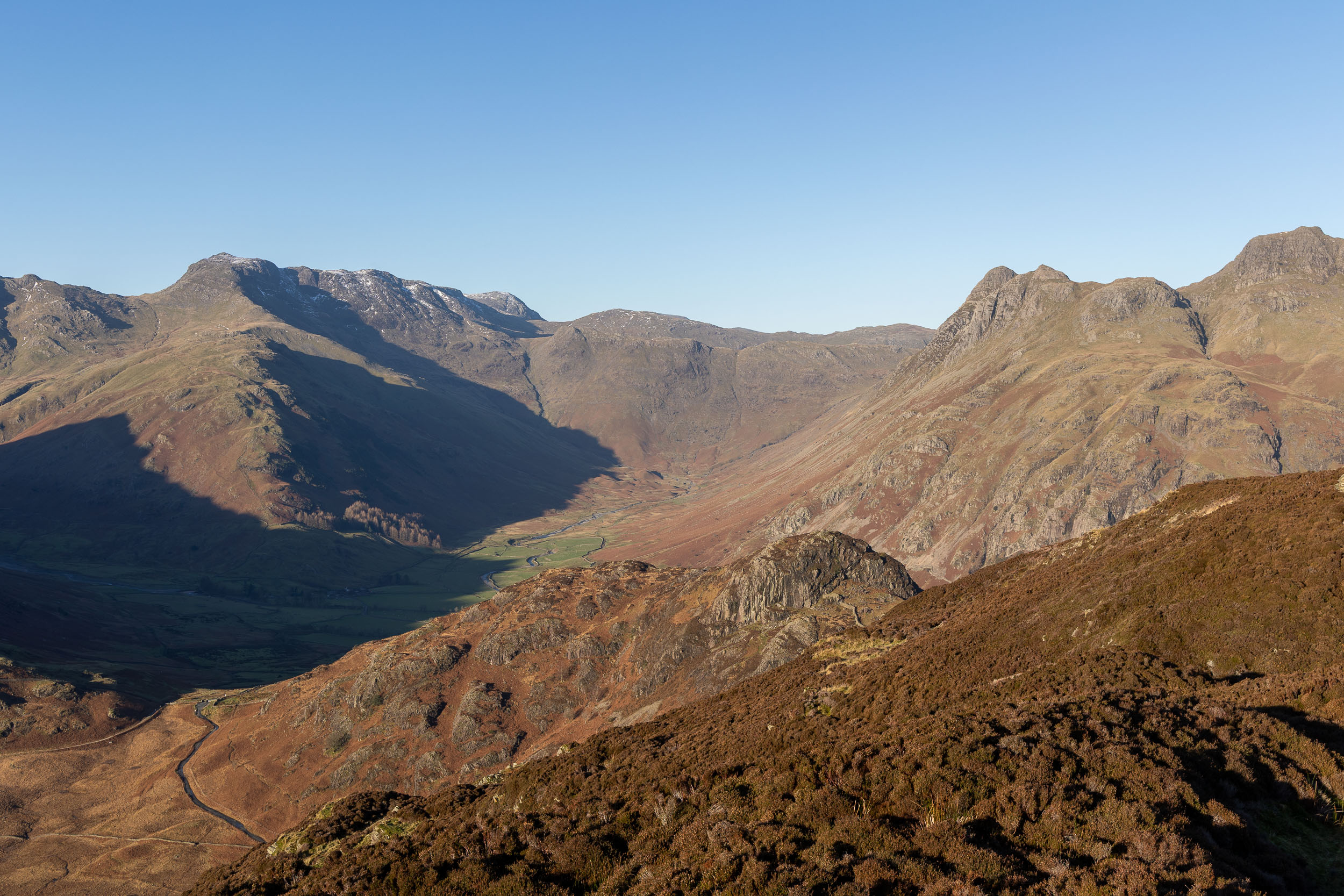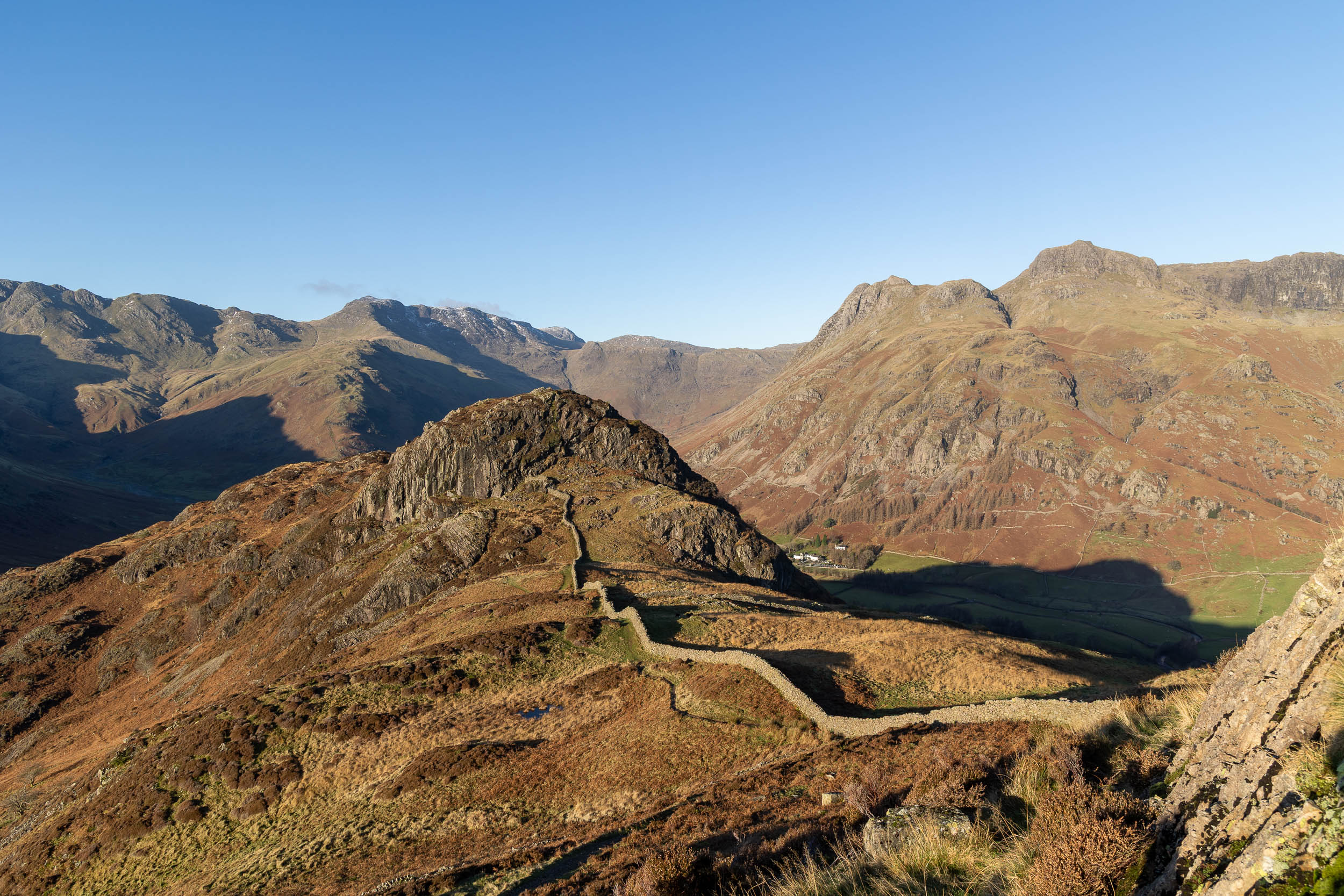 A fine view into Mickleden and our next target is in view, Side Pike (centre right, with the wall at its foot).