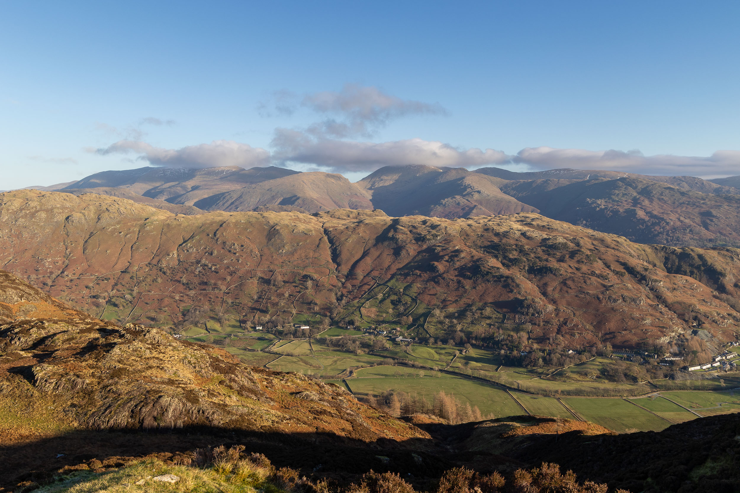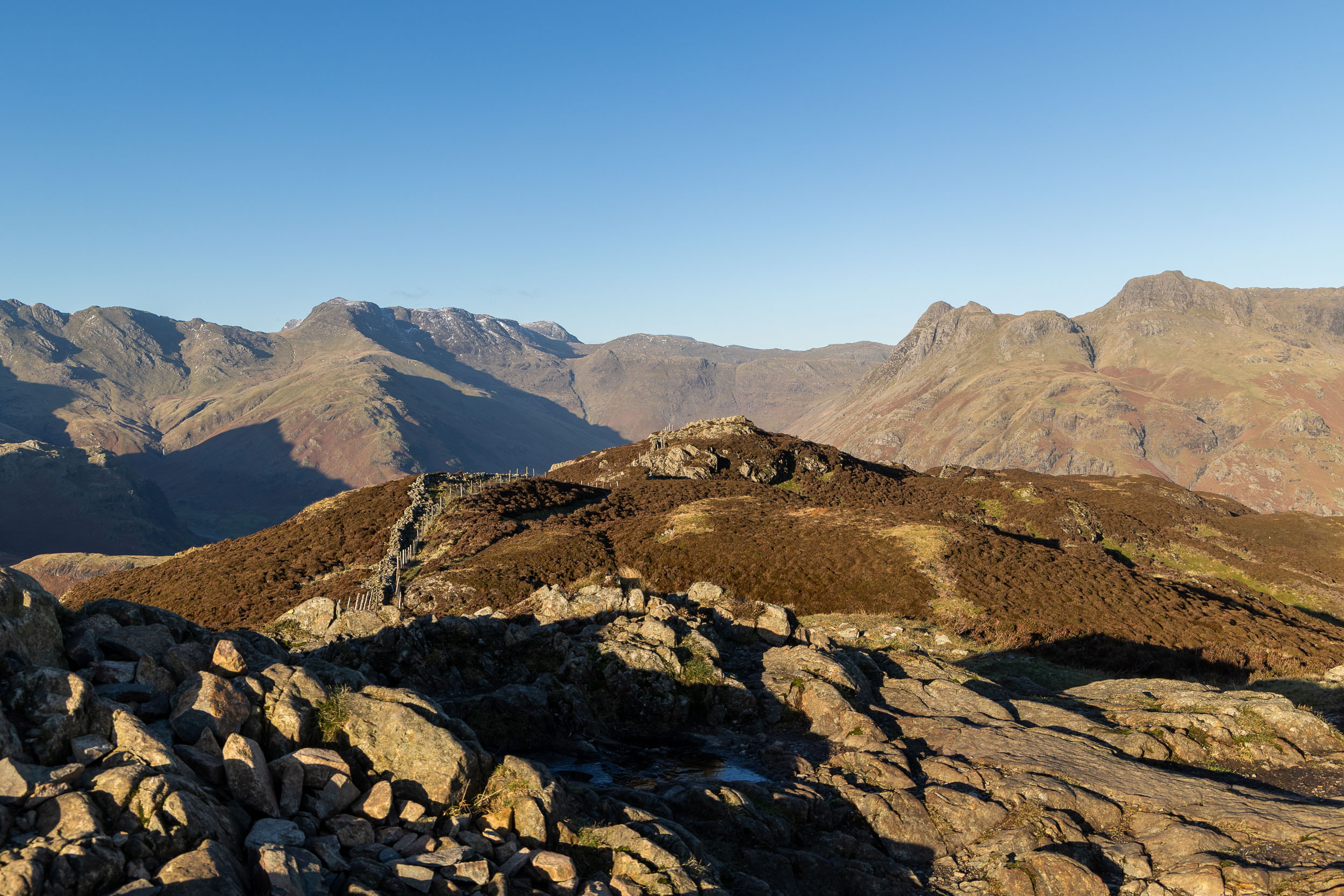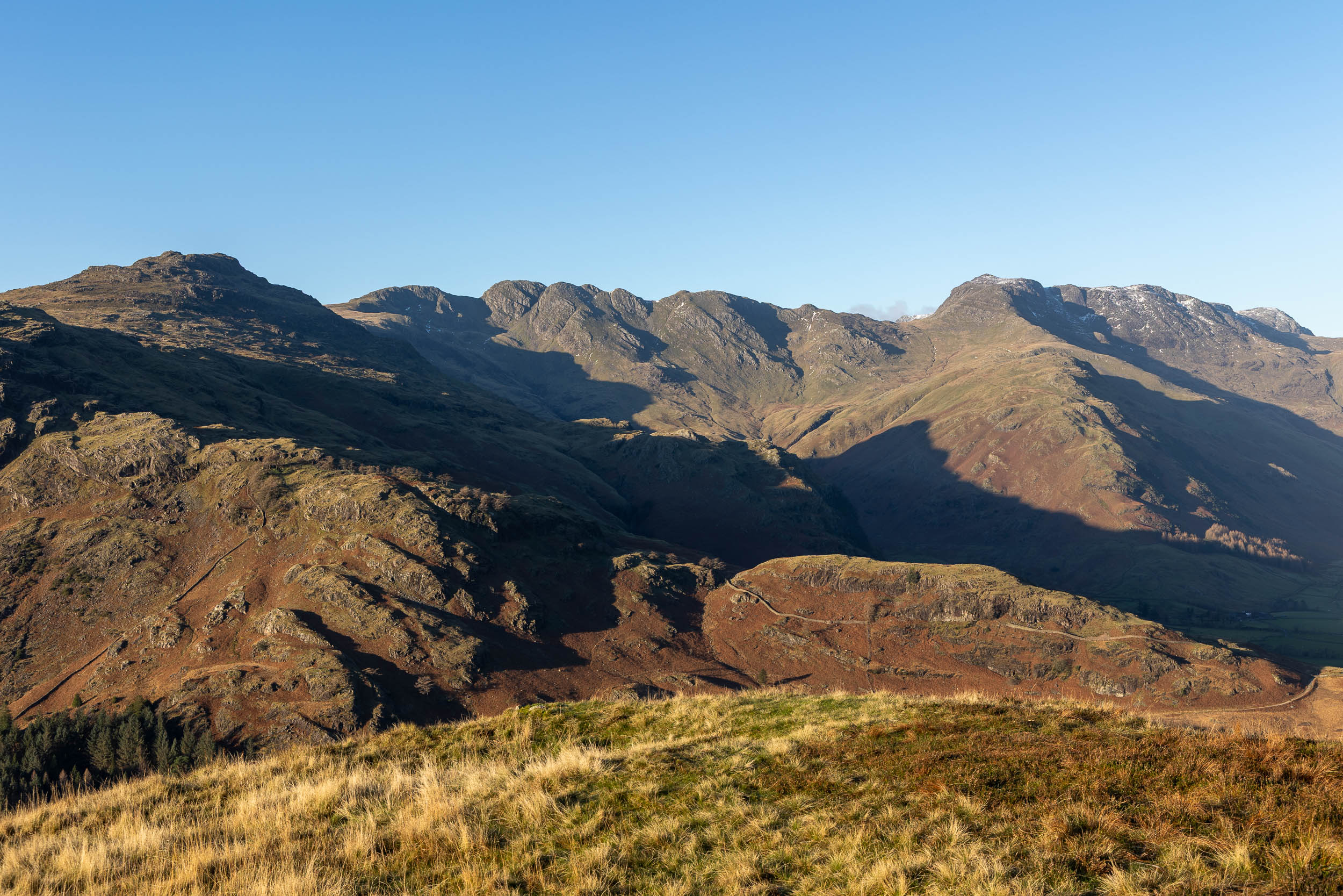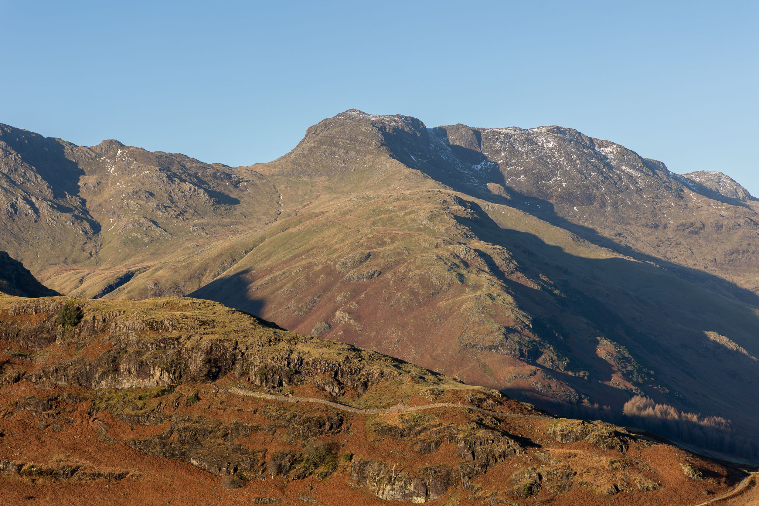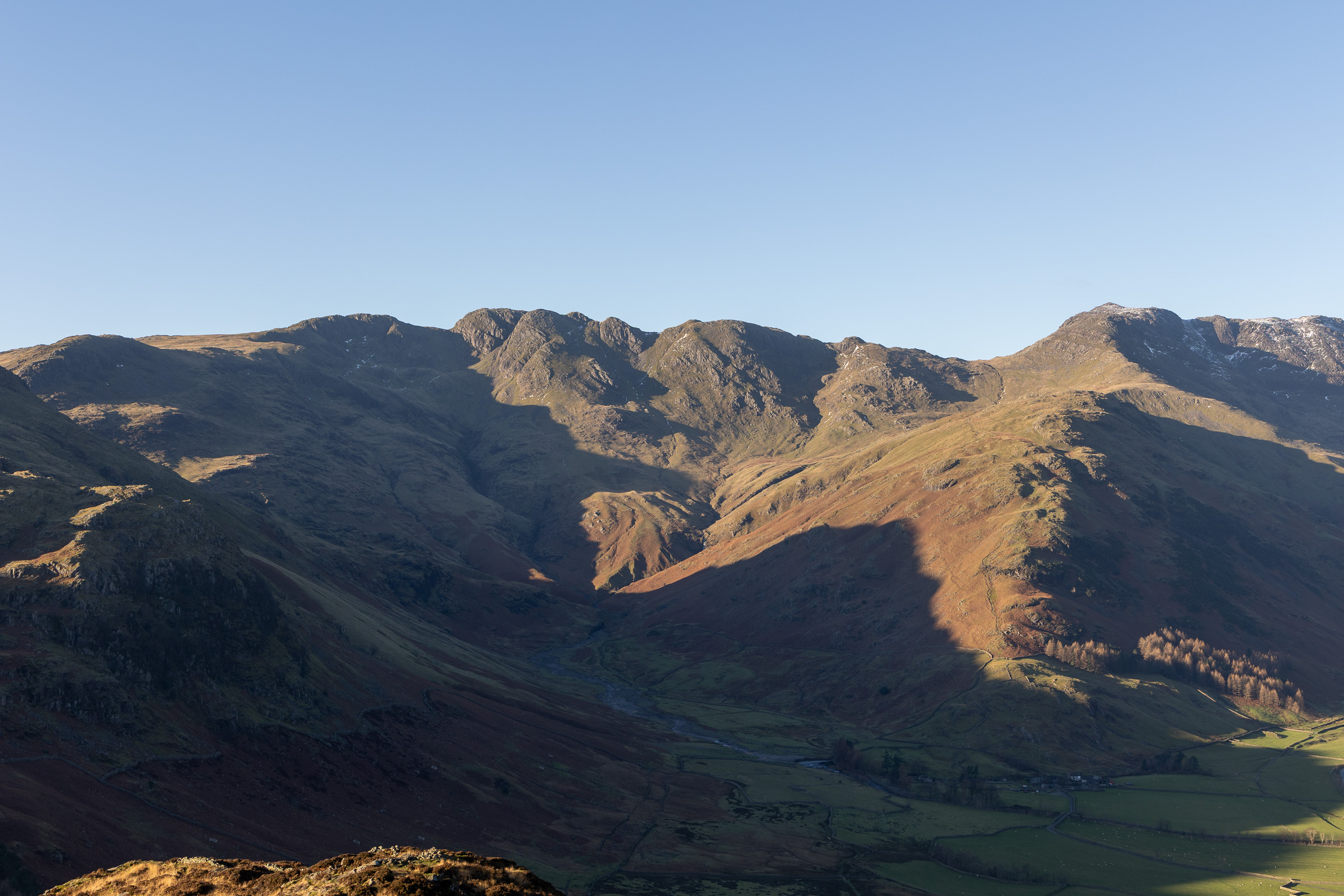 A fine view into Mickleden and our next target is in view, Side Pike (centre right, with the wall at its foot).