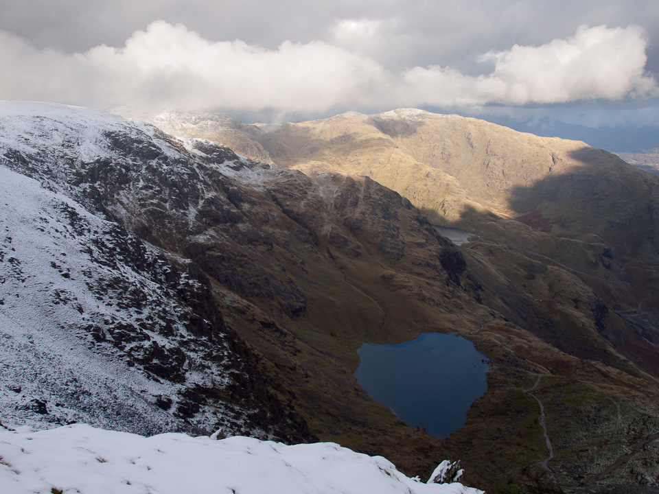 I saw Scafell through a parting in the clouds earlier this morning and could see that there was snow on the tops. It was a good bet that others would have snow on too and on the way to Coniston I could see that those tops were also dusted with snow. It only seems like 5 minutes ago since summer but there you go – full blown winter conditions on the fells once more.