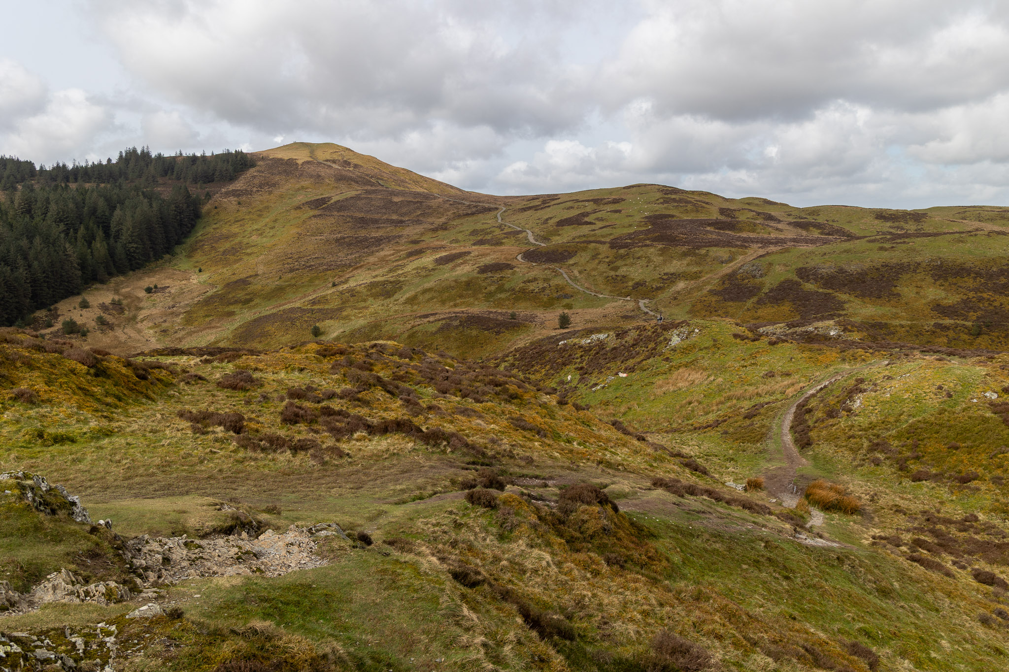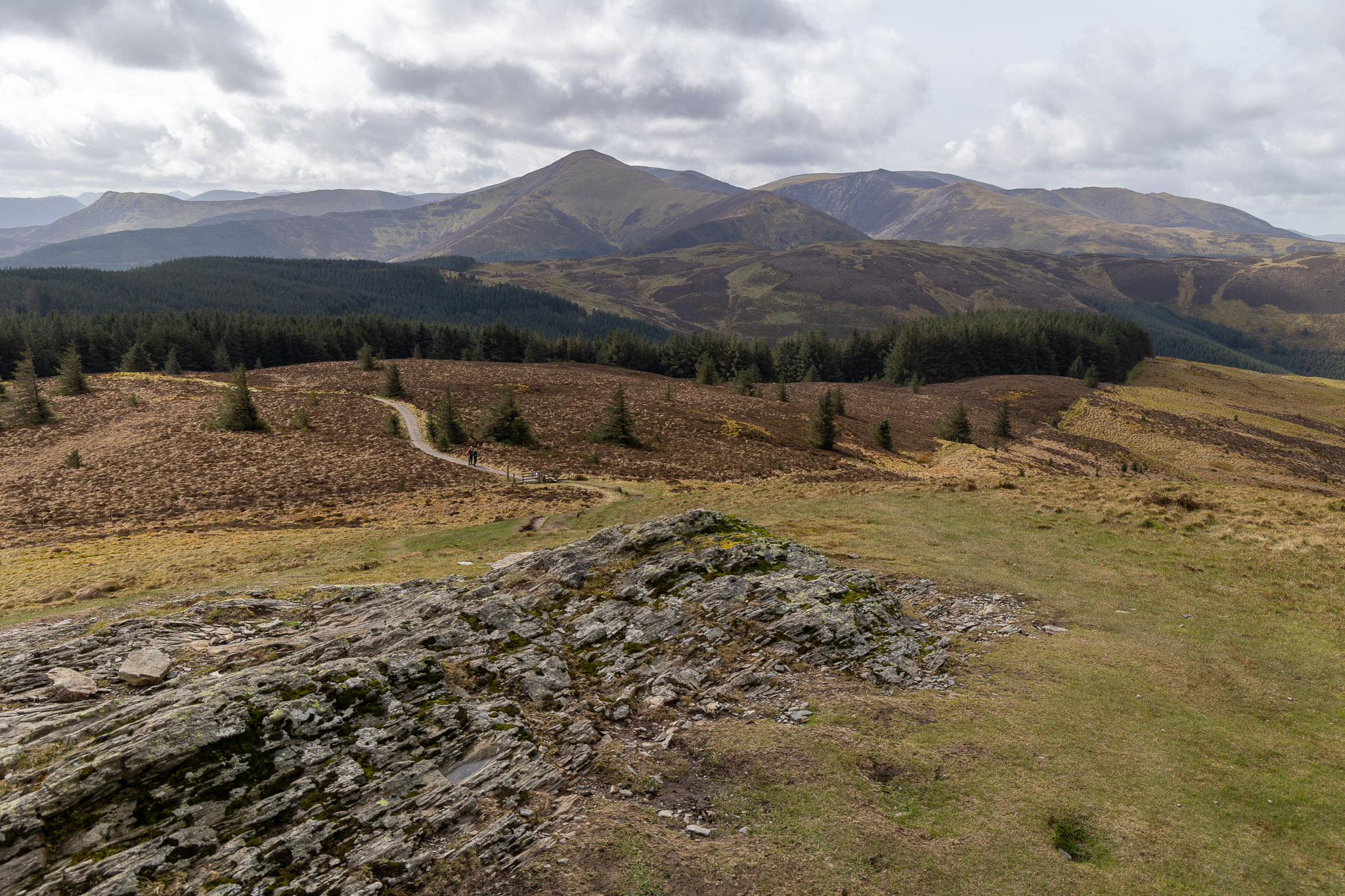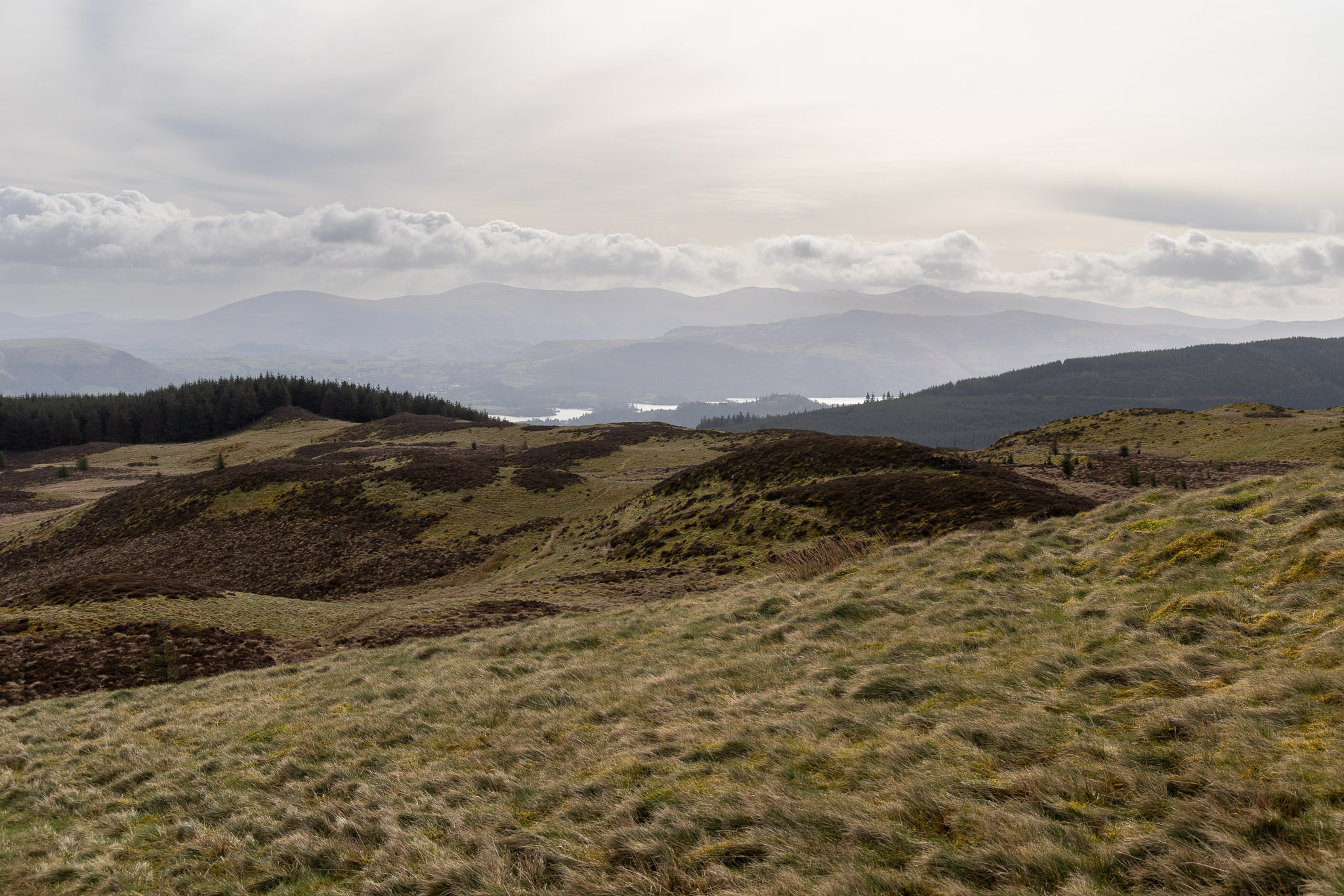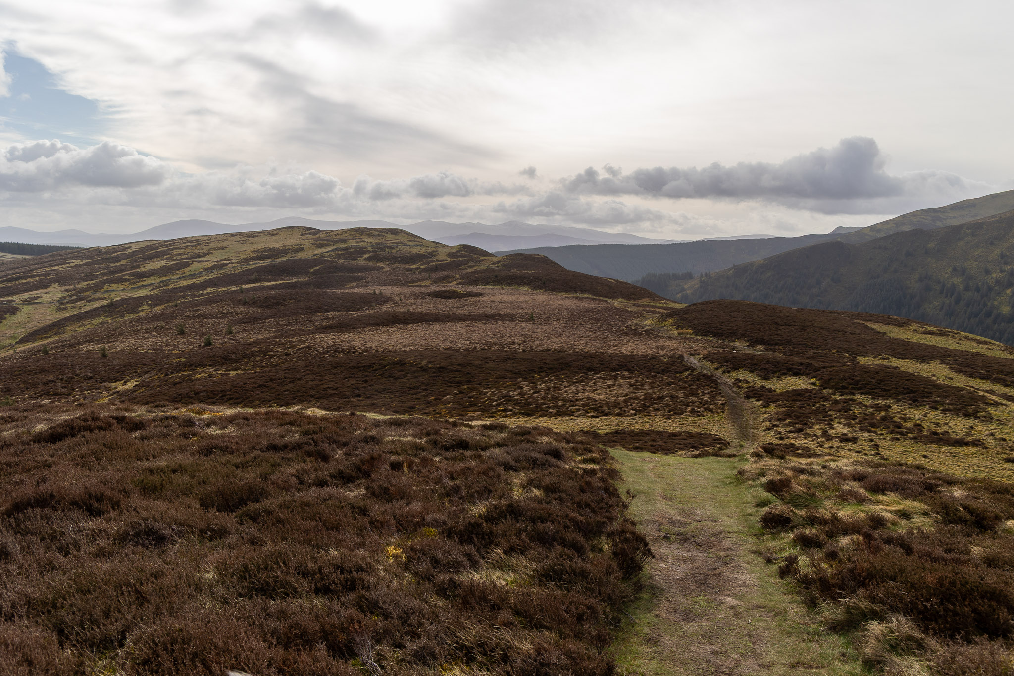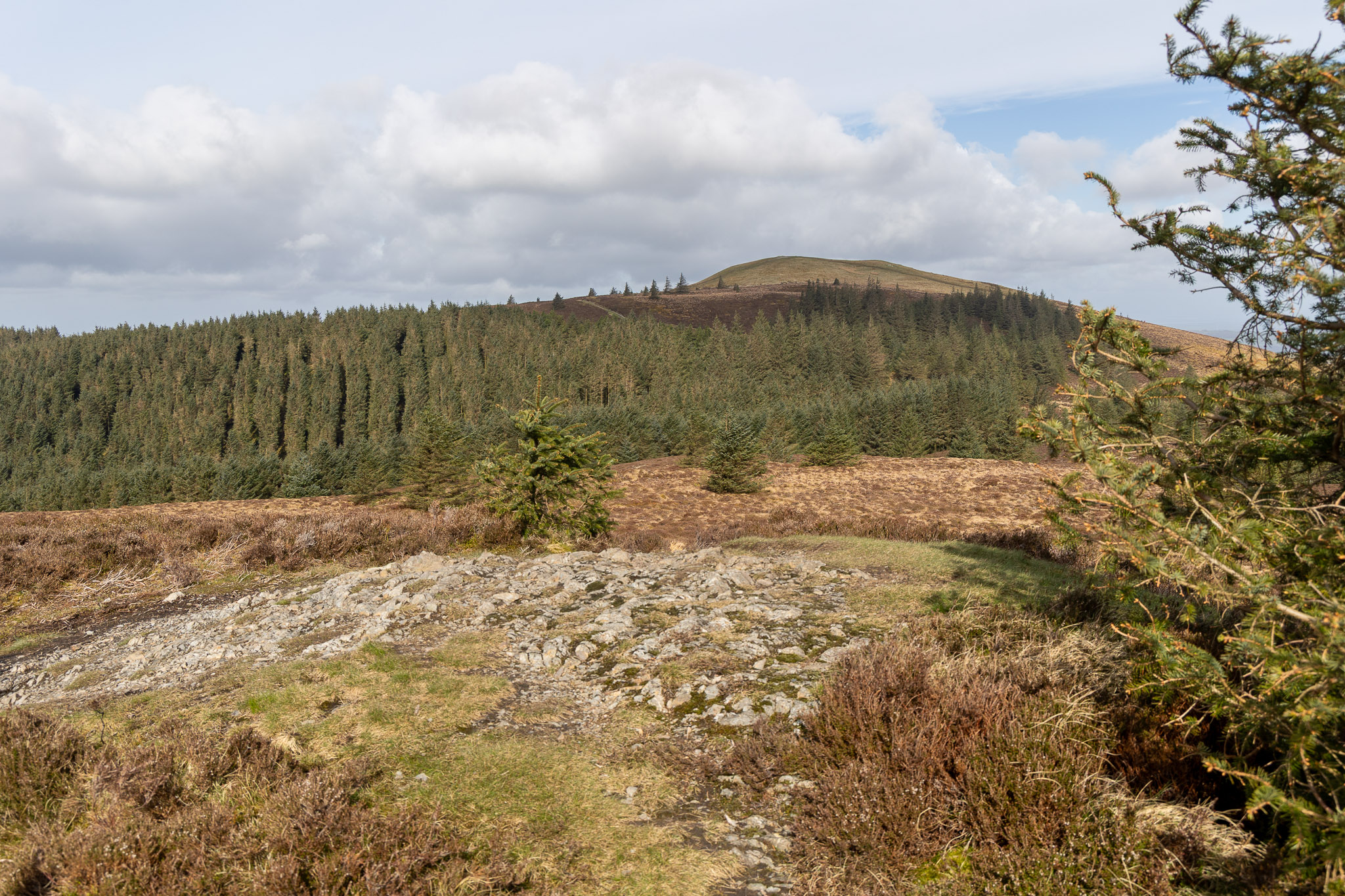 Popping up from a boggy track through the trees we made it to the top of Ulster Hill. My memory told me there were no trees between it and Lord’s Seat last time I was here, but that was years ago! The direct descent was another boggy affair (an expected hazard in a forested areas I guess). Rather than climb directly to Lord’s Seat, I contoured around the eastern slopes of it to pick up the path that descended to Barf.
