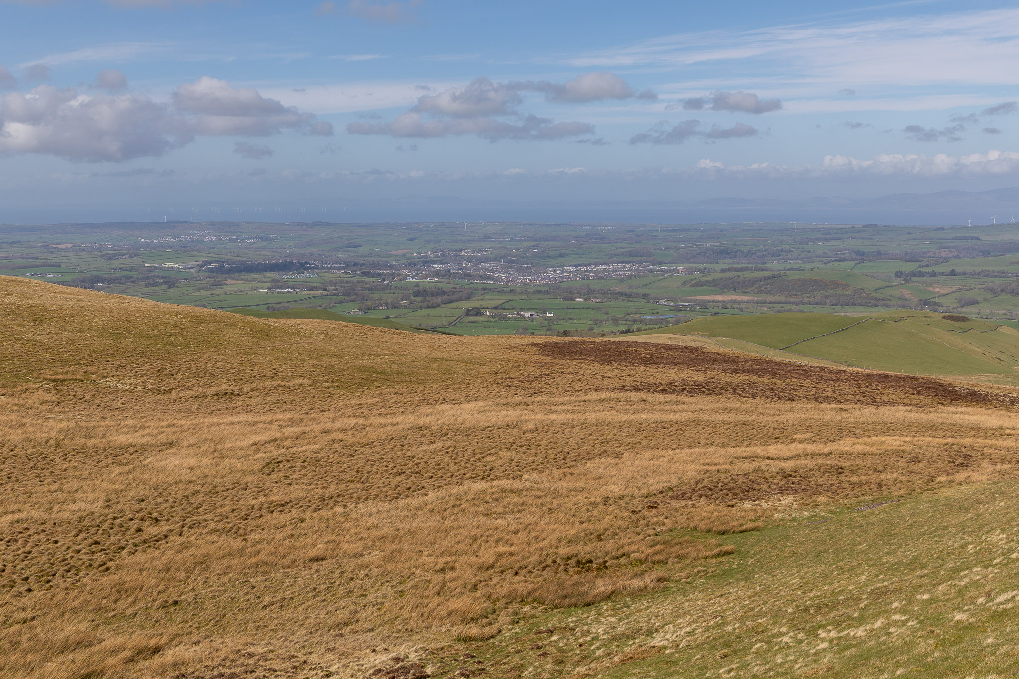 The view across Wythop to Sale fell and Ling Fell. As we walked along this grassy path, a giant transporter plane flew along this view and seemed to be below us (A400M maybe?).