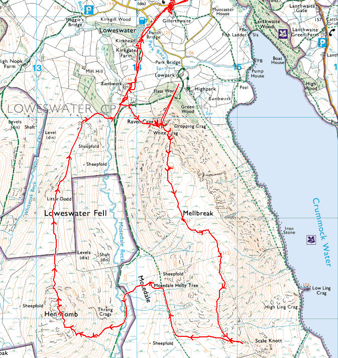 Loweswater – North Top of Mellbreak (340)South Top of Mellbreak (341)Scale Knott (342) – Mosedale – Hen Comb(343)Little Dodd (Loweswater) (344) – Loweswater