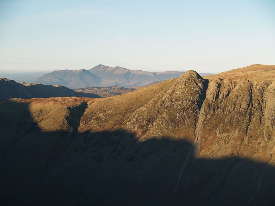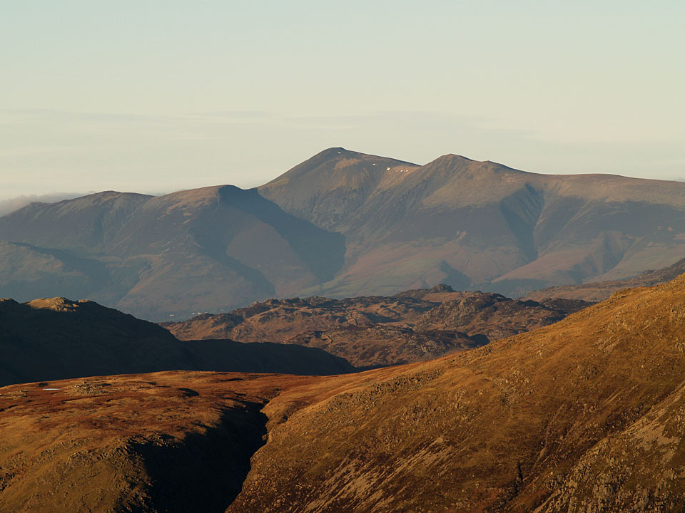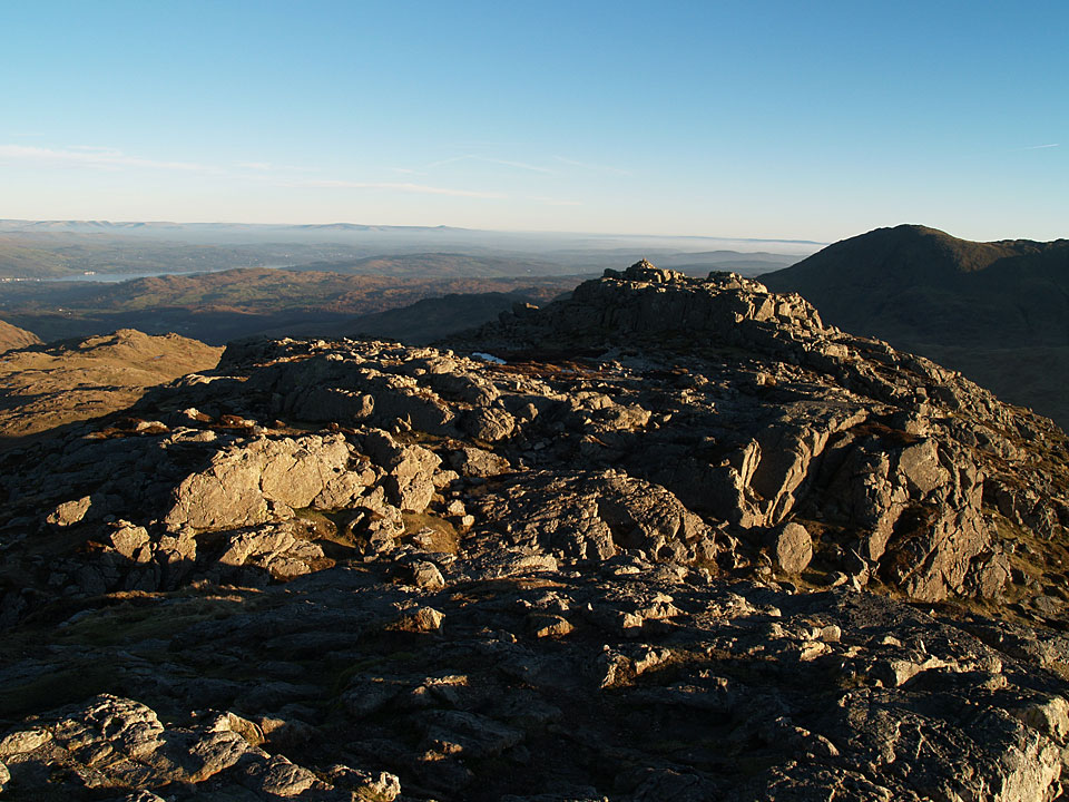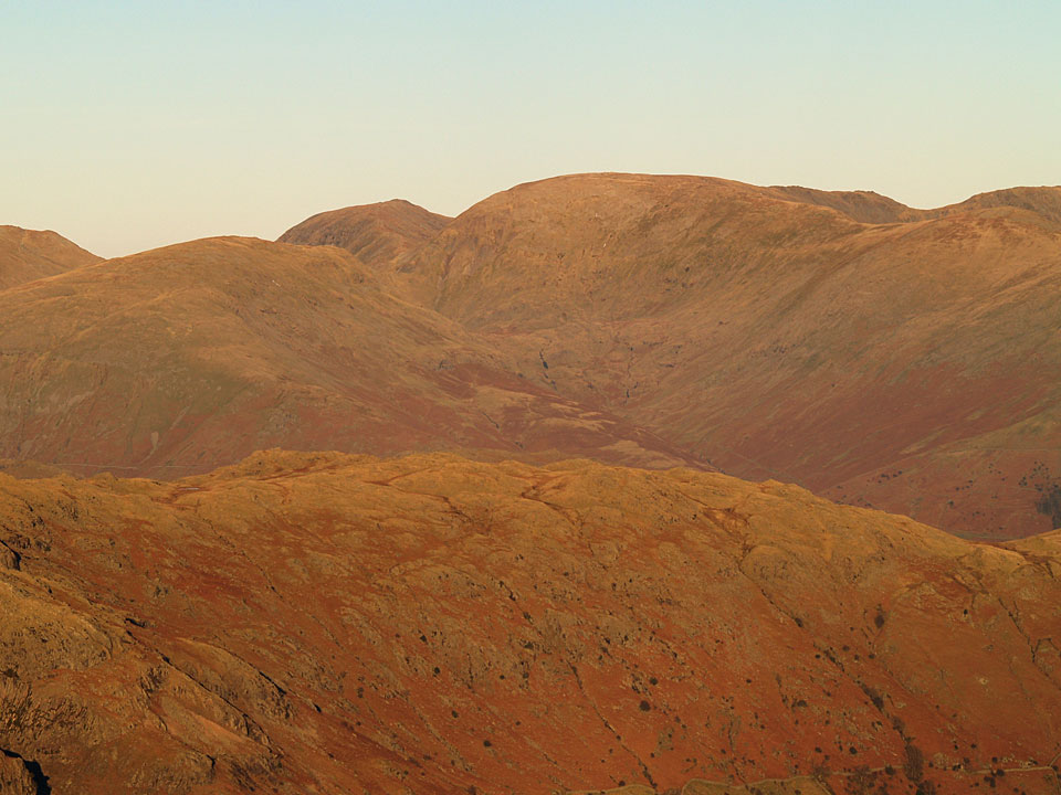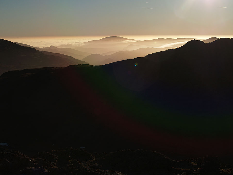 To the south, there was a temperature inversion in the setting sun. The central hump is Black Combe with the pointed Stickle Pike centre left.