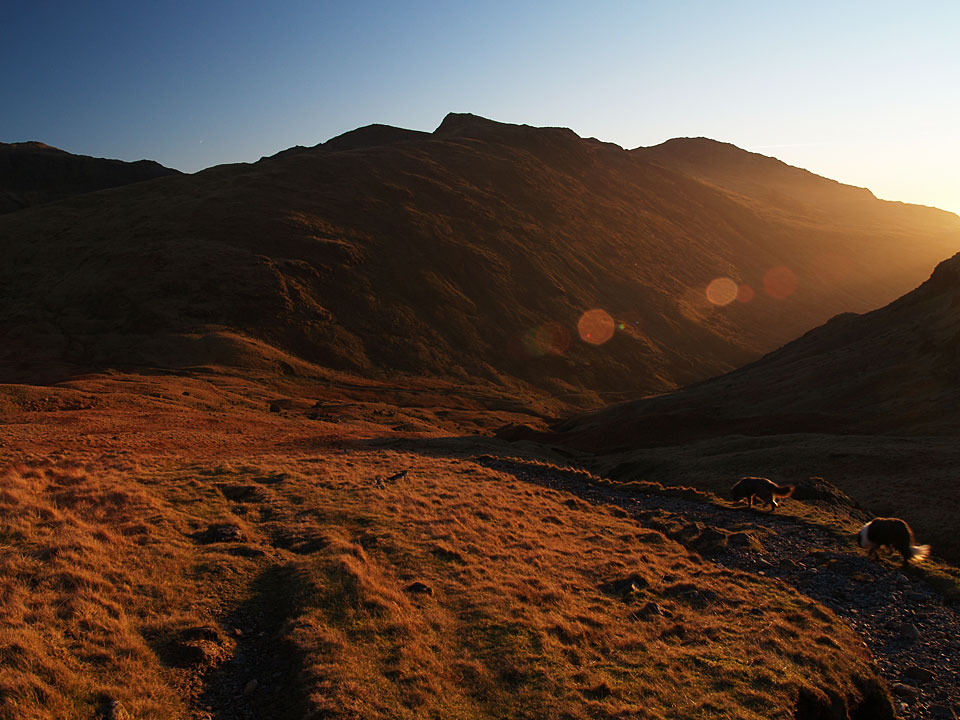As we sat at home in the dense fog at home, I knew it had to better than that higher up – come on Connie, get your glad rags on, we are in search of sunshine and blue skies! It didn’t take long to find it, the fells were brilliantly clear today with a temperature inversion to the south and the golden glow of a great sunset on our descent. A good choice to get out today I think!