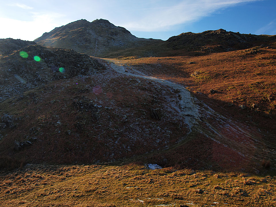 It was another beautiful day today and there was time for a short walk up to old favourite Stickle Pike. The views were once again glorious from up there with a haze layer lying over the Duddon Estuary to the south. Although the temperature was low it was really quite warm in the sunshine, especially when climbing the steep south face of the fell.