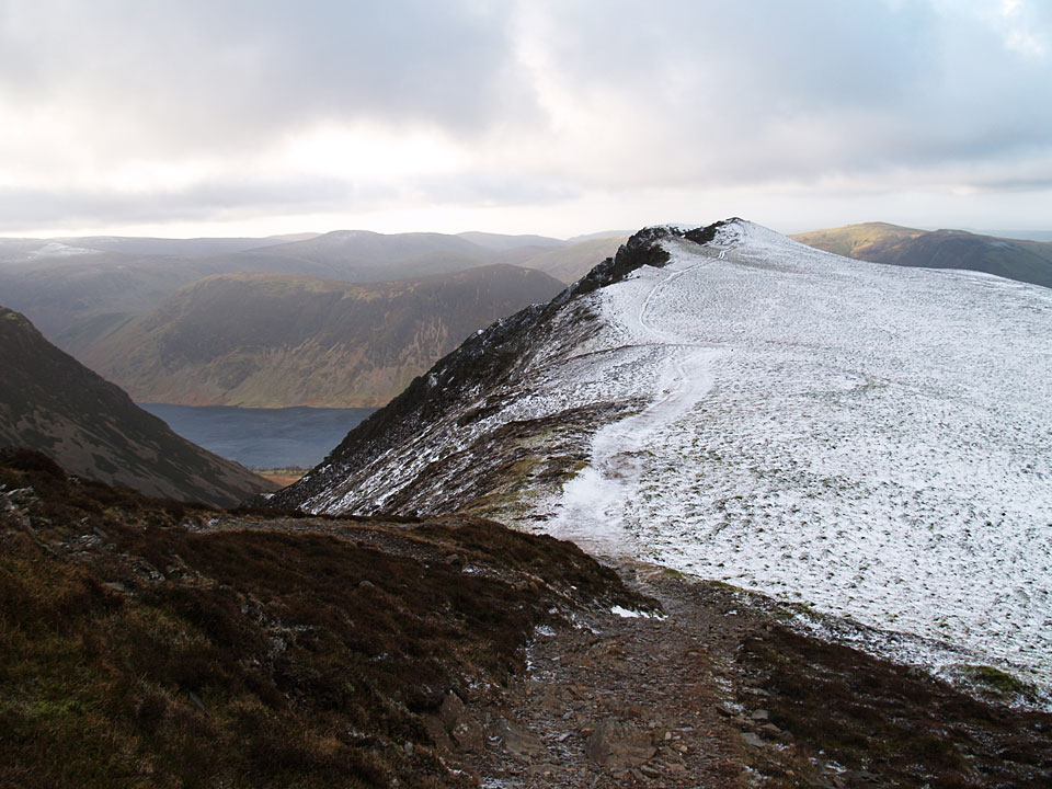 Again from further along the ridge. It was a toss up as to whether I would get blown off by the gale force wind or slip and fall on the ice along here.
