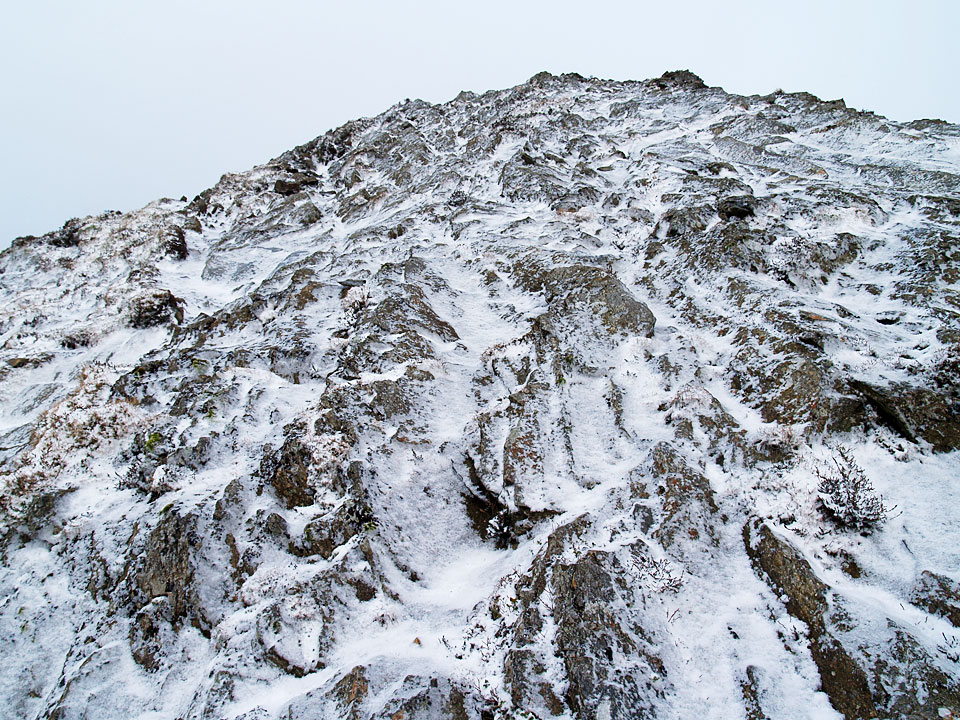 As we climbed above the snowline it became much stronger making walking quite difficult. Two steps forward, one step back.