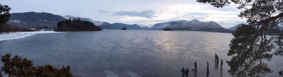 The charge of the Beardie Brigade! After visiting Fell Foot and of course Love the Lakes in Bowness, we went to Keswick and had a walk along the shore of busy Derwent Water. There were plenty of people on the ice - I resisted the temptation to go on it and my recommendation is not to go on it or any ice covered water as you can never tell how thick the ice is.