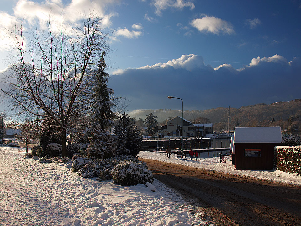 Yesterday we had the most memorable day at Hawkshead when the snow was falling heavily and it was the perfect Christmas scene. I don’t think Connie can remember anything like it before so it was quite special. The snow continued throughout yesterday afternoon and overnight so when it came to getting to Bowness, predictably the world came to a bit of a standstill today. The main A590 beyond Ulverston was bad and traffic was at a crawl. The A592 to Bowness was also had lots of snow on it but there weren’t so many cars around. When we got to Bowness it was like a different world for half and hour or so…