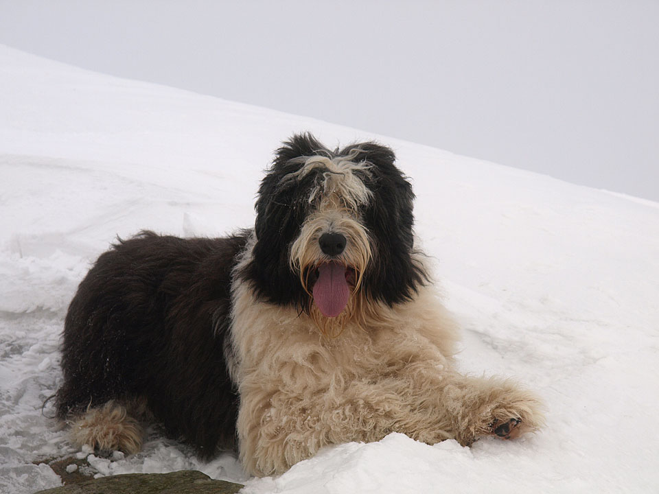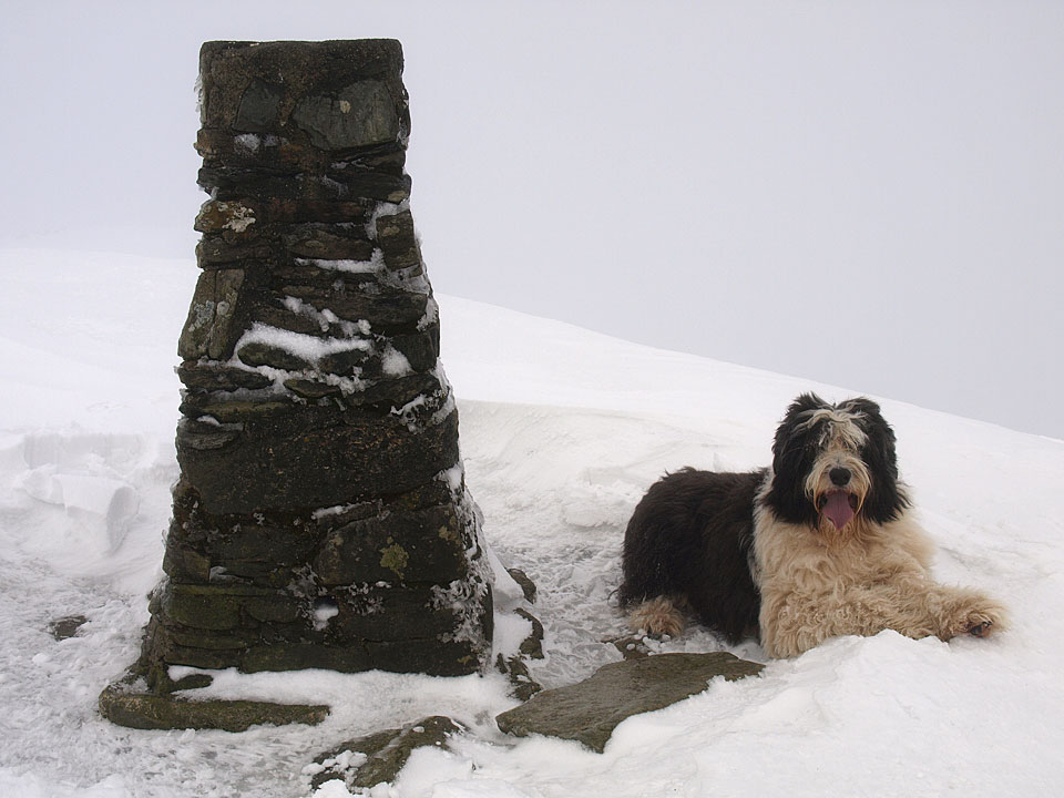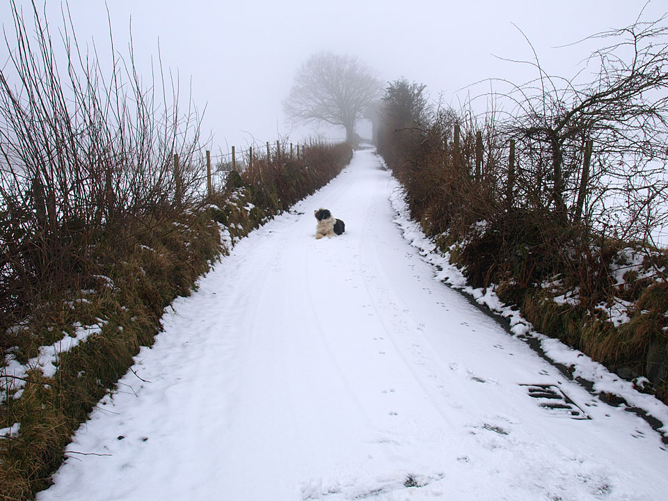The snowy and icy roads meant a walk from the village today to reach the Walna Scar Road. Patient Casper waits in the middle of the road!