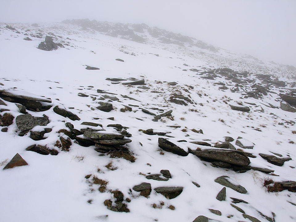 On the climb to the summit. Things were brightening up as I reached the top and at one stage I did think I may be able to get above the clouds...